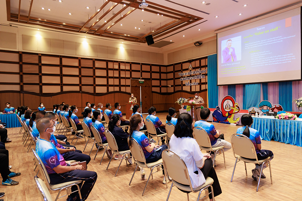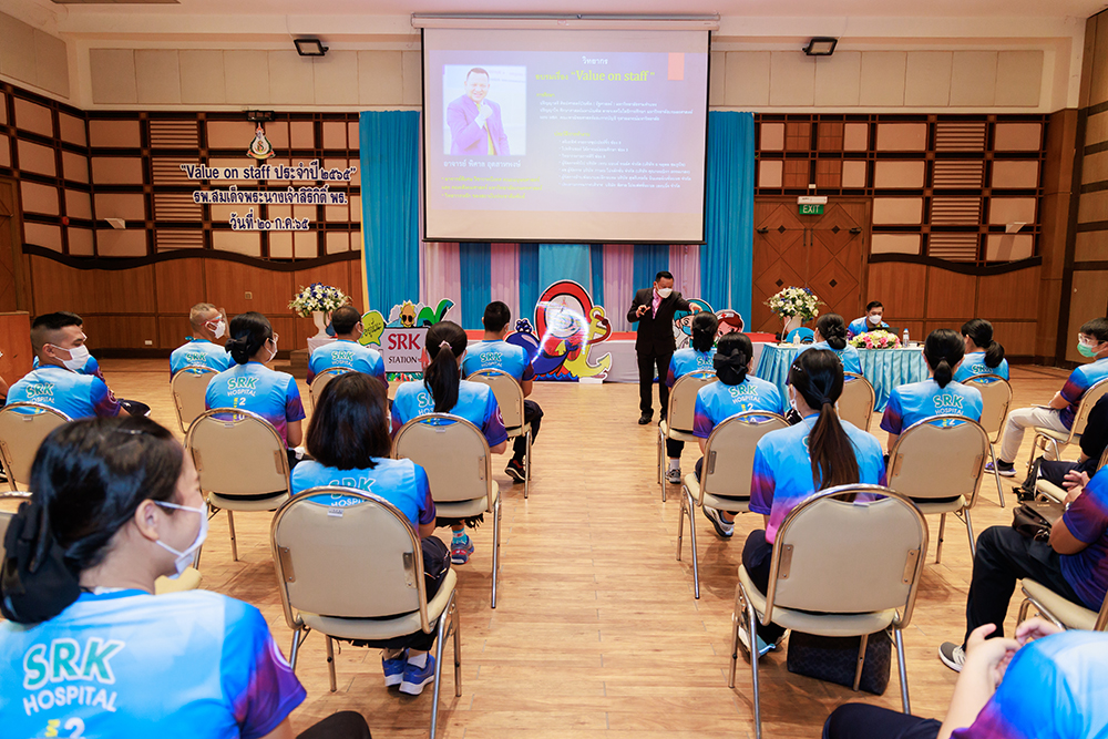 เมื่อ ๒๐ ก.ค.๖๕ พล.ร.ต.อานัน นิ่มนวล ผอ.รพ.สมเด็จพระนางเจ้าสิริกิติ์ พร. เป็นประธานเปิดการอบรมโครงการ “Value on staff” ประจำปี ๒๕๖๕ วัตถุประสงค์ของโครงการเพื่อเป็นการเสริมพลังให้บุคลากรทั้งข้าราชการและสหวิชาชีพ ให้เห็นคุณค่าของตนเองและผู้ร่วมงาน ทำงานด้วยความตระหนักในคุณค่าและงานที่รับผิดชอบ รวมทั้งให้ความสำคัญกับการตอบสนองความต้องการของผู้รับบริการ การทำงานที่เอื้อต่อผู้รับบริการ วิทยากรโดย อาจารย์ พิศาล อุตสาหพงษ์ อาจารย์พิเศษวิชาวาทนิเทศ ภาควิชานิเทศศาสตร์และการสารสนเทศศาสตร์ มหาวิทยาลัยเกษตรศาสตร์ และ คุณกัลดนัย อัจฉริยะอุสาห์ วิทยากรหลักของกรมประชาสัมพันธ์ ณ ห้องคลองไผ่ หอประชุมโรงพยาบาลสมเด็จพระนางเจ้าสิริกิติ์ / รพ.อาภากรเกียรติวงศ์ ฐท.สส. / By ข่าวผู้บังคับบัญชา จำนวนคนดู : 11
