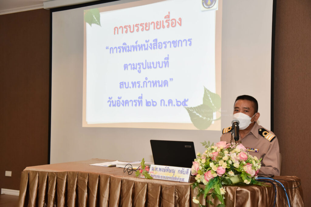 เมื่อ ๒๖ ก.ค.๖๕ นาวาเอก ประทีป ตังติสานนท์ รองผู้อำนวยการโรงพยาบาลอาภากรเกียรติวงศ์ ฐท.สส. เป็นประธานเปิดการประชุมวิชาการเรื่อง การพิมพ์หนังสือราชการตามรูปแบบที่ สบ.ทร. กำหนด โดย นาวาโท พงษ์พิษณุ กลับดี หัวหน้าสารบรรณ กองอำนวยการโรงพยาบาล ให้เกียรติเป็นวิทยากรผู้บรรยาย ณ ห้องประชุมลุมพิกานนท์
