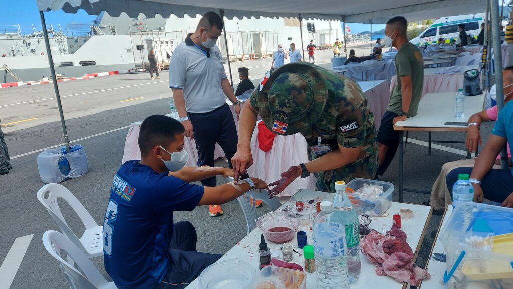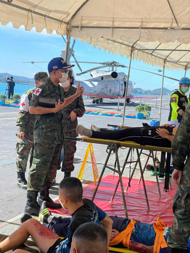 ระหว่าง ๑๘ – ๑๙ ส.ค.๖๕ รพ.อาภากรเกียรติวงศ์​ ฐท.สส.​ จัดกำลังพลเข้าร่วมการฝึก Sarex 2022 และศูนย์รับแจ้งเหตุและสั่งการด้านการแพทย์ทางทะเล รพ.อาภากรเกียรติวงศ์ฯ เข้าร่วมการฝึกในการอำนวยการ ประสานงานด้านการแพทย์ทางทะเลร่วมกับหน่วยงานที่เกี่ยวข้อง และส่งต่อผู้เจ็บป่วยทางทะเลให้กับศูนย์สั่งการชลบุรี  โดยมี นาวาเอก ณัฐศักดิ์ วรเจริญศรี รองผู้อำนวยการกองนาวิกเวชกิจ โรงพยาบาลอาภากรเกียรติวงศ์ฯ ทำหน้าที่ หัวหน้าศูนย์รับแจ้งเหตุฯ ควบคุมการปฏิบัติด้านการแพทย์ในการฝึกฯ ณ ท่าเรือจุกเสม็ด อ.สัตหีบ จว.ชลบุรี