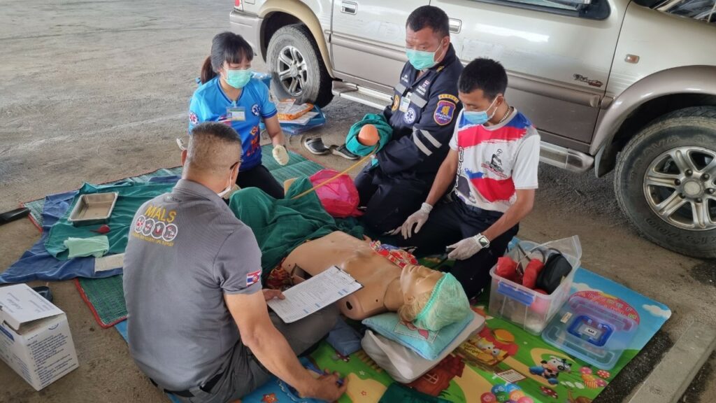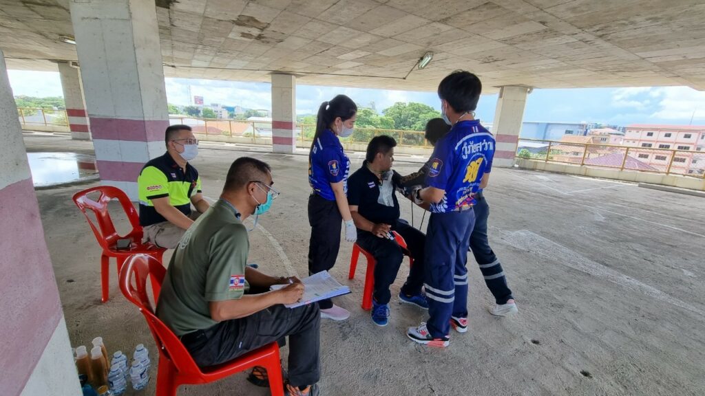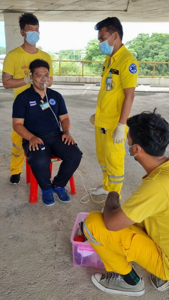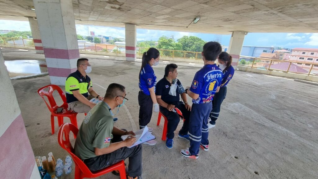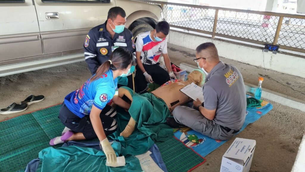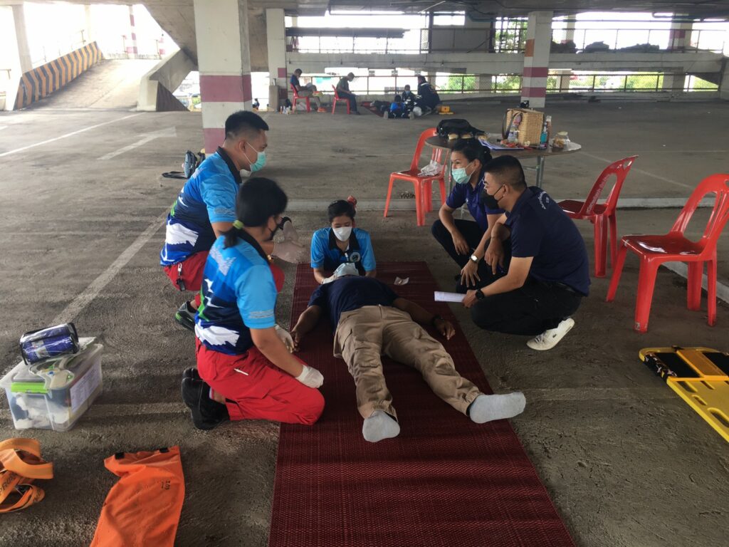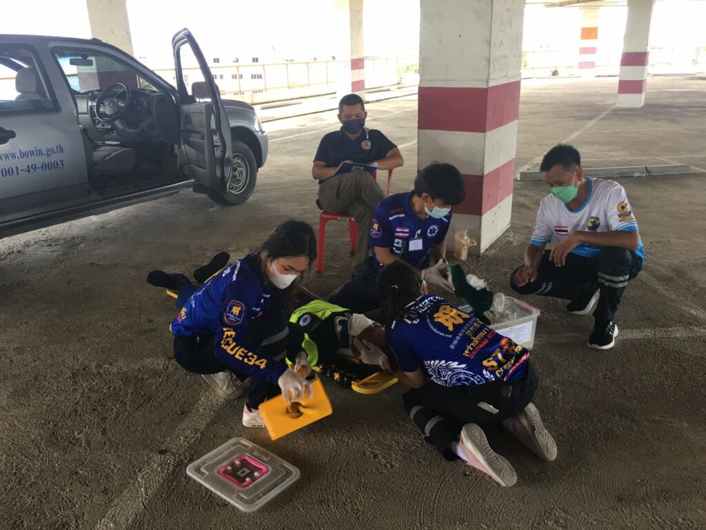 เมื่อ ๓ ก.ย.๖๕ โรงพยาบาลอาภากรเกียรติวงศ์ ฐานทัพเรือสัตหีบ กองนาวิกเวชกิจ ดำเนินการสอบภาคปฏิบัติหลักสูตรการปฏิบัติการแพทย์ขั้นพื้นฐานและช่วยปฏิบัติการแพทย์ขั้นสูง (EMT) อบจ.ชลบุรี เพื่อให้ผู้เข้าร่วมหลักสูตร มีความรู้ ทักษะ และสามารถปฏิบัติการฉุกเฉินขั้นพื้นฐานแก่ผู้ป่วยฉุกเฉิน ตามอำนาจหน้าที่ขอบเขตความรับผิดชอบ และข้อจำกัดในการปฏิบัติการแพทย์ครั้งที่ ๑ ณ มูลนิธิสว่างบริบูรณ์เมืองพัทยา จว.ชลบุรี
