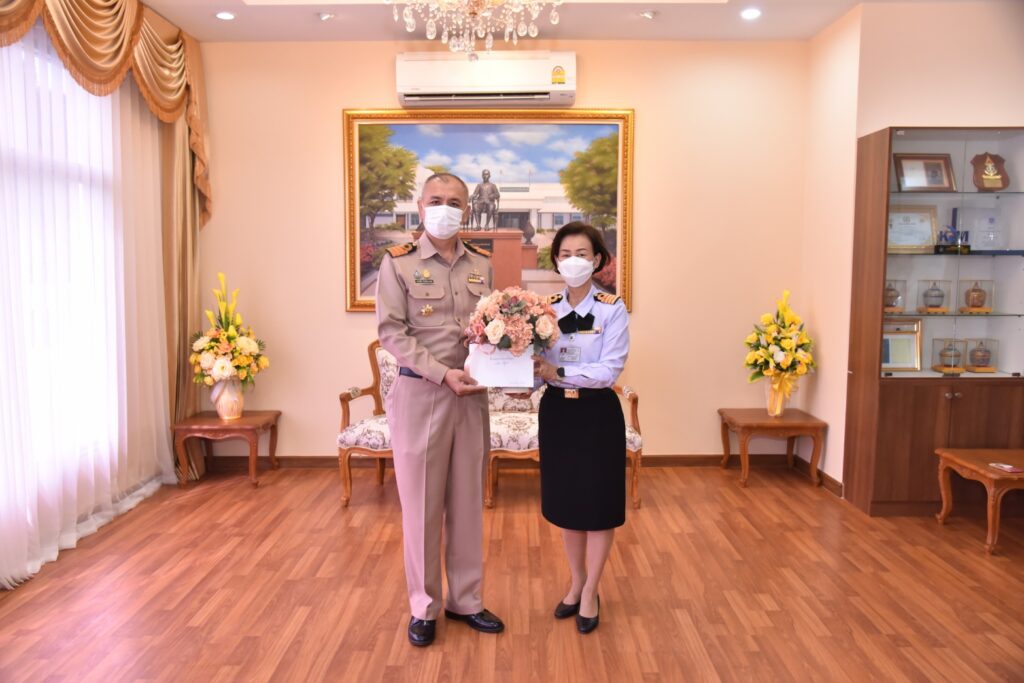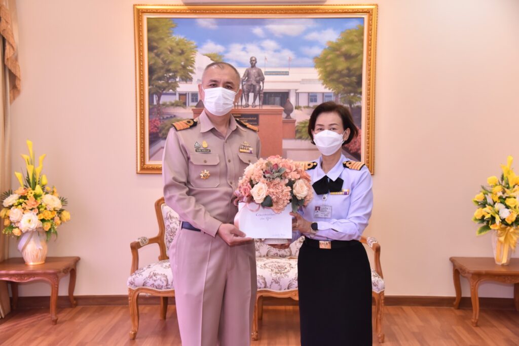 เมื่อ ๒๗ ก.ย.๖๕ นาวาเอกหญิง ปณิชา สิริกรรณะ ผู้ช่วยผู้อำนวยการ โรงพยาบาลอาภากรเกียรติวงศ์ ฐานทัพเรือ สัตหีบ (ฝ่ายบริหารคุณภาพ) แสดงความยินดีกับ นาวาเอก ประทีป ตังติสานนท์ เนื่องในโอกาสได้รับพระราชทานโปรดเกล้าฯ ให้ดำรงตำแหน่ง ผอ.รพ.อาภากรเกียรติวงศ์ ฐท.สส. ณ ห้องรับรองอาภากรเกียรติวงศ์  รพ.อาภากรเกียรติวงศ์ ฐท.สส.