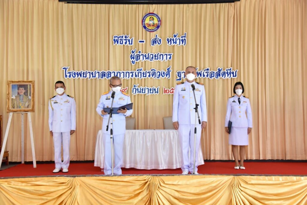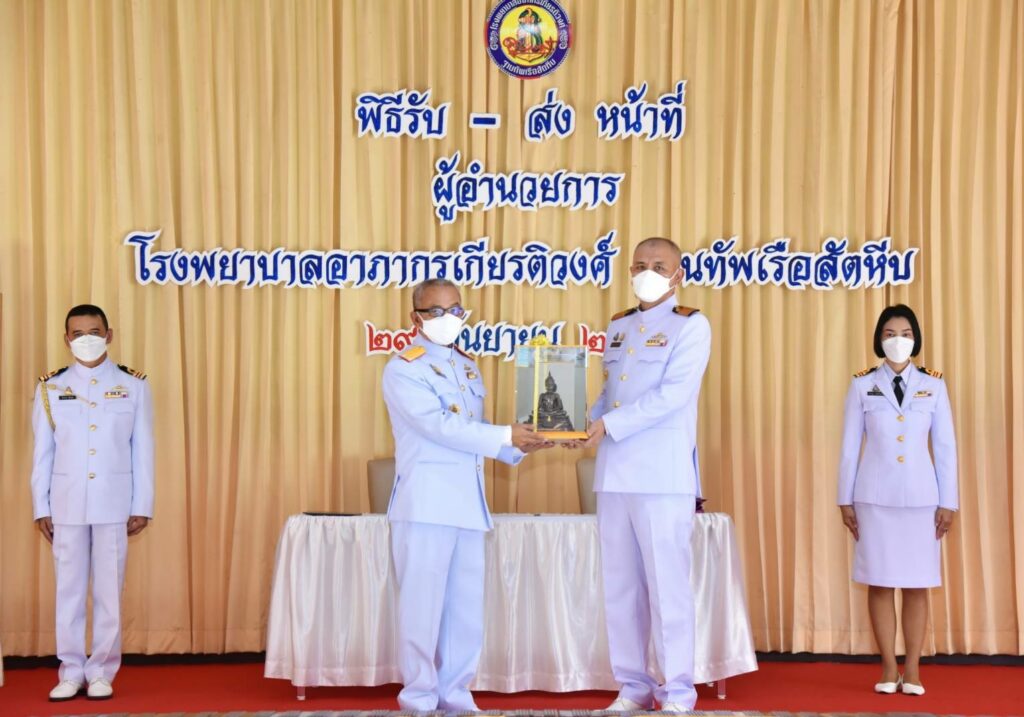 เมื่อ ๒๙ ก.ย.๖๕ พลเรือตรี ขจิตร์ อุษณีษ์สวัสดิ์ชัย ผู้อำนวยการโรงพยาบาลอาภากรเกียรติวงศ์ ฐานทัพเรือสัตหีบ ส่งมอบหน้าที่ ให้ นาวาเอก ประทีป ตังติสานนท์ ผอ.รพ.อาภากรเกียรติวงศ์ ฐท.สส. ท่านใหม่ ณ ห้องประชุมกฤษณจันทร์ กิจการสโมสร รพ.อาภากรเกียรติวงศ์ ฐท.สส. / รพ.อาภากรเกียรติวงศ์ ฐท.สส. / By ข่าวผู้บังคับบัญชา จำนวนคนดู : 30