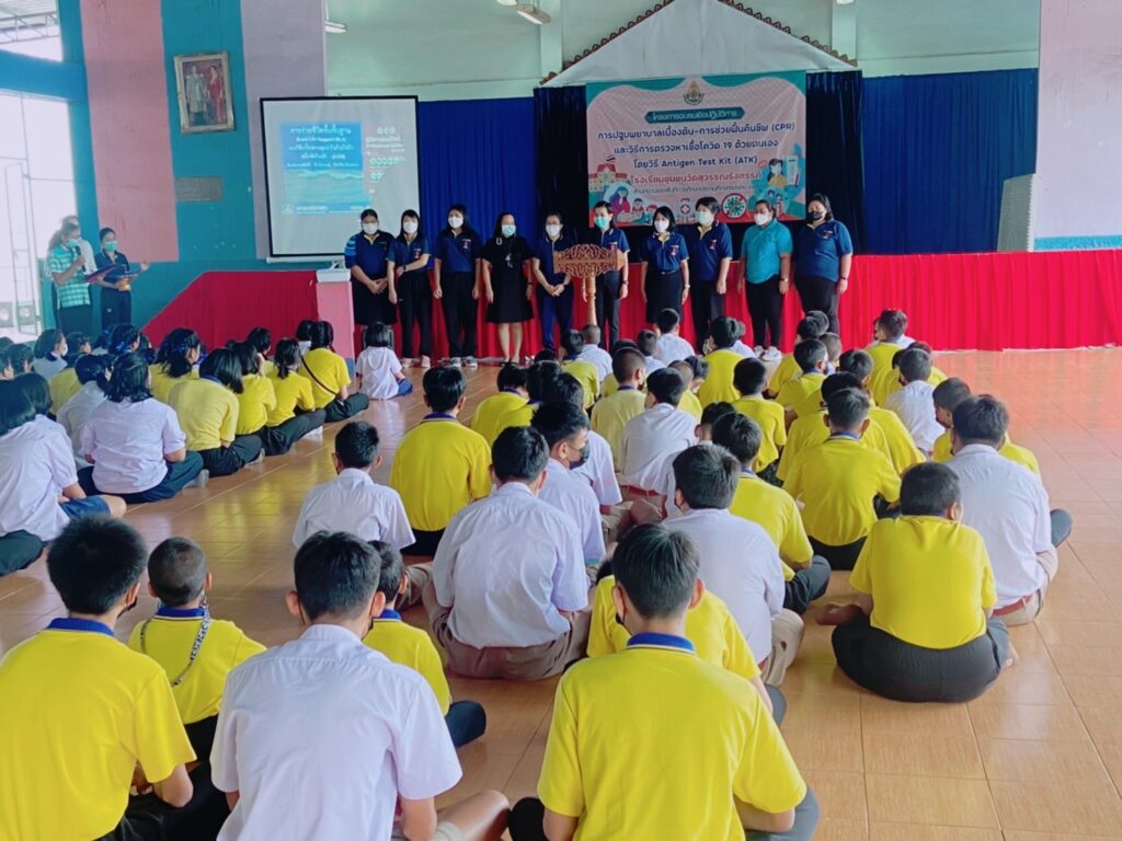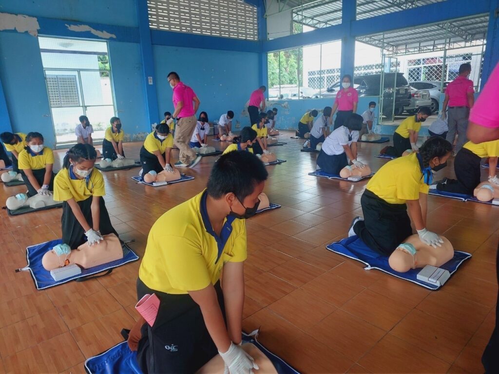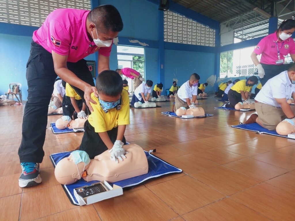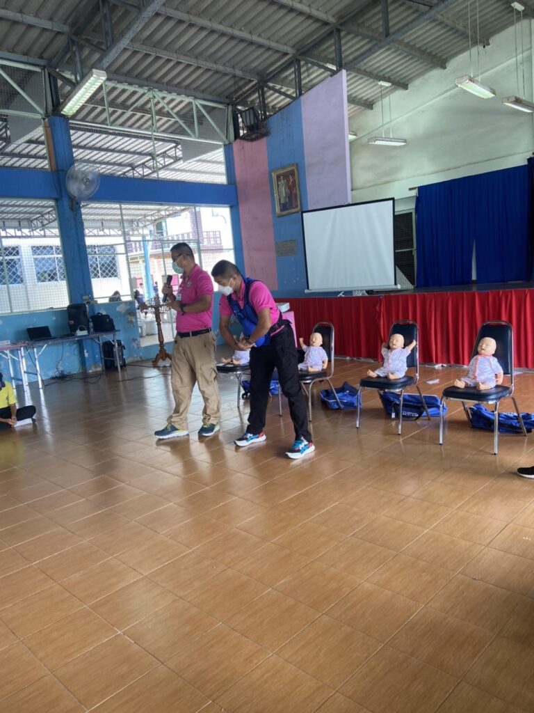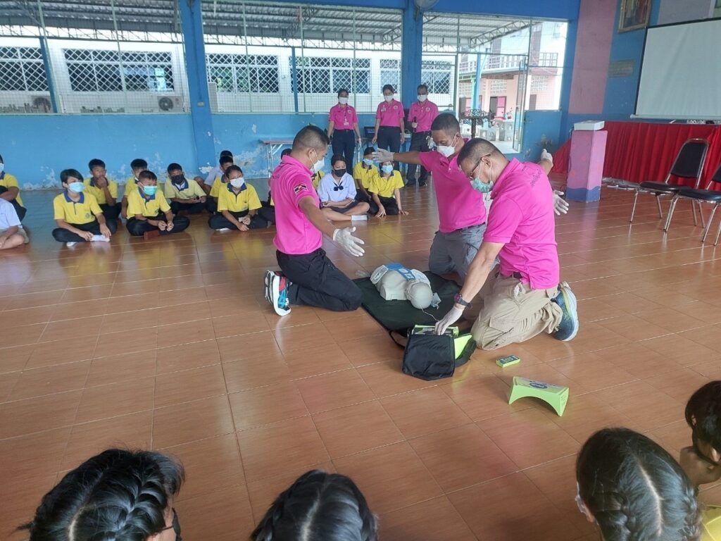 เมื่อ ๕ ต.ค.๖๕ กองนาวิกเวชกิจ โรงพยาบาลอาภากรเกียรติวงศ์ ฐานทัพเรือสัตหียบ สนับสนุนวิทยากรให้ความรู้ทฤษฏีและปฏิบัติในการปฐมพยาบาล การช่วยชีวิตขั้นพื้นฐานและการใช้เครื่อง AED แก่คณะครู นักเรียน รร.ชุมชนวัดสุวรรณรังสรรค์ ณ อาคารเอนกประสงค์ รร.ชุมชนวัดสุวรรณรังสรรค์ อ.บ้านฉาง จว.ระยอง / รพ.อาภากรเกียรติวงศ์ ฐท.สส. / By ข่าวผู้บังคับบัญชา จำนวนคนดู : 24