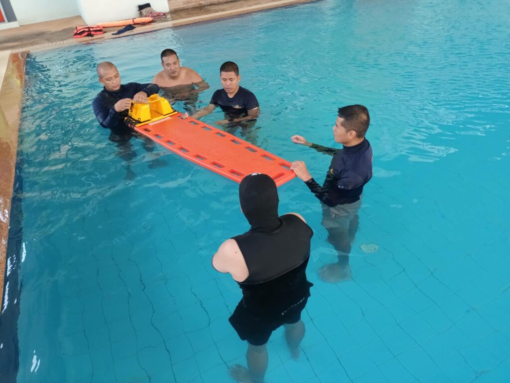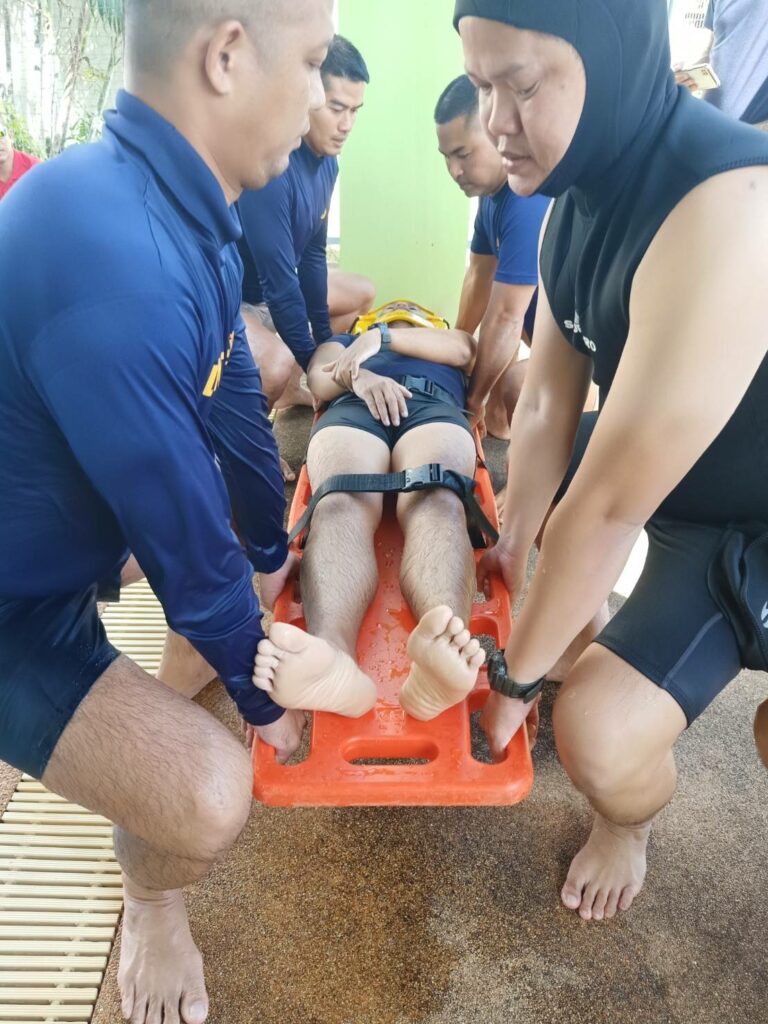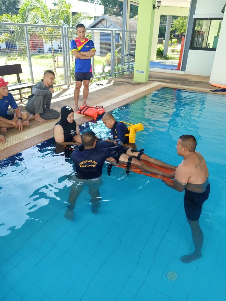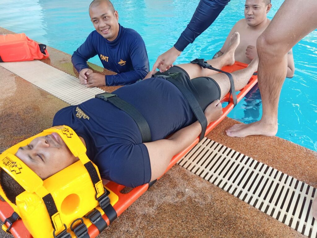 เมื่อ ๒ พ.ย.๖๕ กองเวชศาสตร์ใต้น้ำและการบิน โรงพยาบาลอาภากรเกียรติวงศ์ ฐานทัพเรือสัตหีบ ฝึกทบทวน Maritime and Aquatic Life Support (MALS) เป็นการฝึกการกู้ชีพและช่วยชีวิตทางน้ำ ทั้งด้านการป้องกัน (Prevention) การเข้าช่วย (Rescue) การดูแลรักษา (Care) และการเคลื่อนย้ายและลำเลียง (Transportation and evacuation) เพื่อเตรียมความพร้อมของกำลังพลในหน่วยงาน ณ สระว่ายน้ำ รพ.อาภากรเกียรติวงศ์ ฐท.สส. / รพ.อาภากรเกียรติวงศ์ ฐท.สส. / By ข่าวผู้บังคับบัญชา จำนวนคนดู : 18