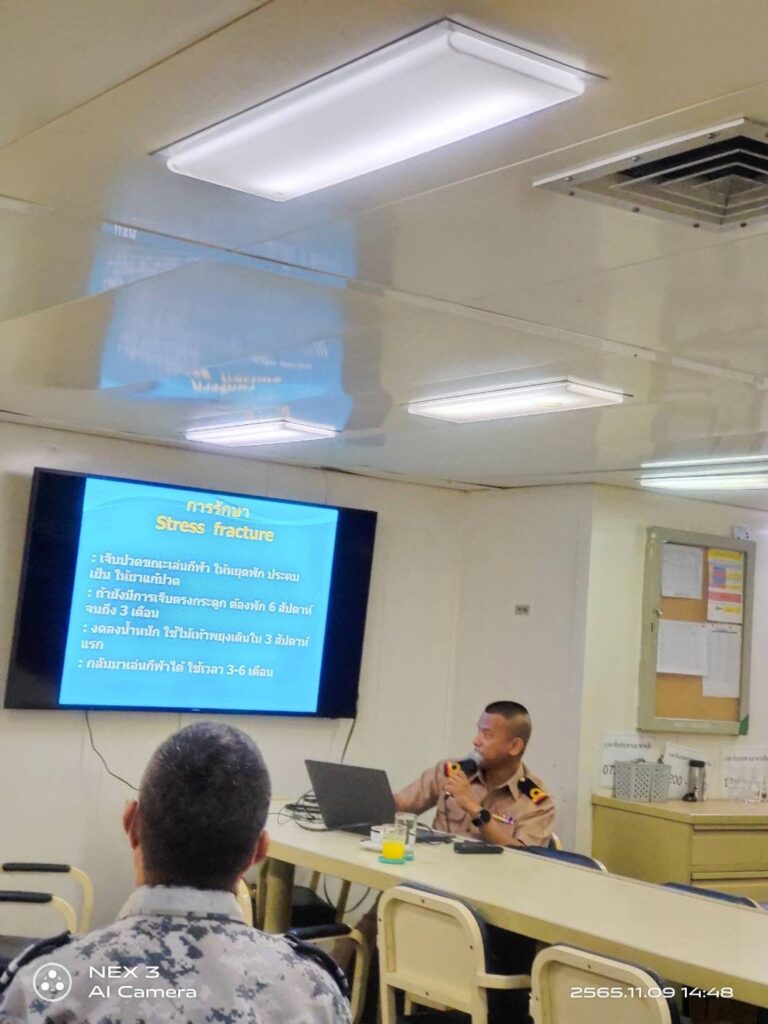 เมื่อ ๙ พ.ย.๖๕ แผนกทดสอบสมรรถภาพทางกาย กองเวชกรรมป้องกัน โรงพยาบาลอาภากรเกียรติวงศ์ ฐานทัพเรือสัตหีบ ได้ดำเนินการบรรยายให้ความรู้เกี่ยวกับการเตรียมร่างกายก่อนการวิ่งระยะไกล ให้กับชมรมวิ่งเพื่อสุขภาพ เพื่อส่งเสริมการออกกำลังกายของข้าราชการ โดยมี เรือตรี ไกรฤกษ์ มีแย้ม เป็นวิทยากร ณ ห้องประชุม เรือหลวงจักรีนฤเบศร กองเรือบรรทุกเฮลิคอปเตอร์ กร. / รพ.อาภากรเกียรติวงศ์ ฐท.สส. / By ข่าวผู้บังคับบัญชา จำนวนคนดู : 8