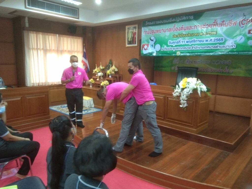เมื่อ ๑๑ พ.ย.๖๕ กองนาวิกเวชกิจ โรงพยาบาลอาภากรเกียรติวงศ์ ฐานทัพเรือสัตหีบ  สนับสนุนวิทยากรให้ความรู้ทฤษฏีและปฏิบัติในการปฐมพยาบาล การช่วยชีวิตขั้นพื้นฐานและการใช้เครื่อง AED แก่เจ้าหน้าที่อาสาสมัครสาธารณสุขประจำหมู่บ้าน (อสม)  เจ้าหน้าที่เทศบาล และประชาชนทั่วไป ของเทศบาลตำบลมาบข่า ณ ห้องประชุมสภาเทศบาล สำนักงานเทศบาลตำบลมาบข่า จว.ระยอง