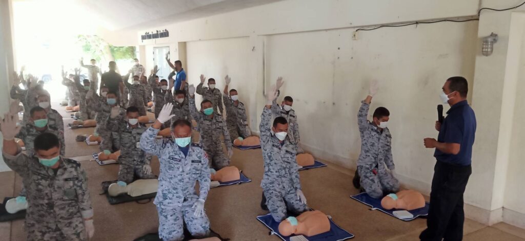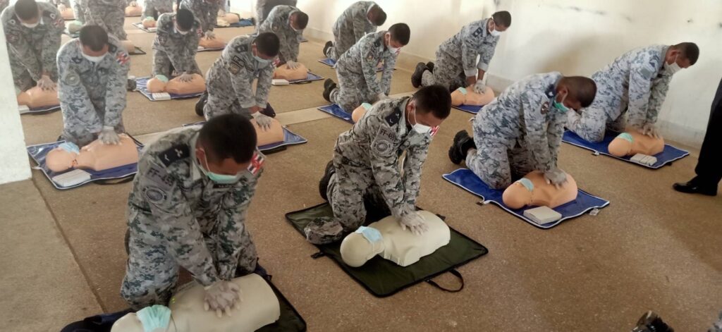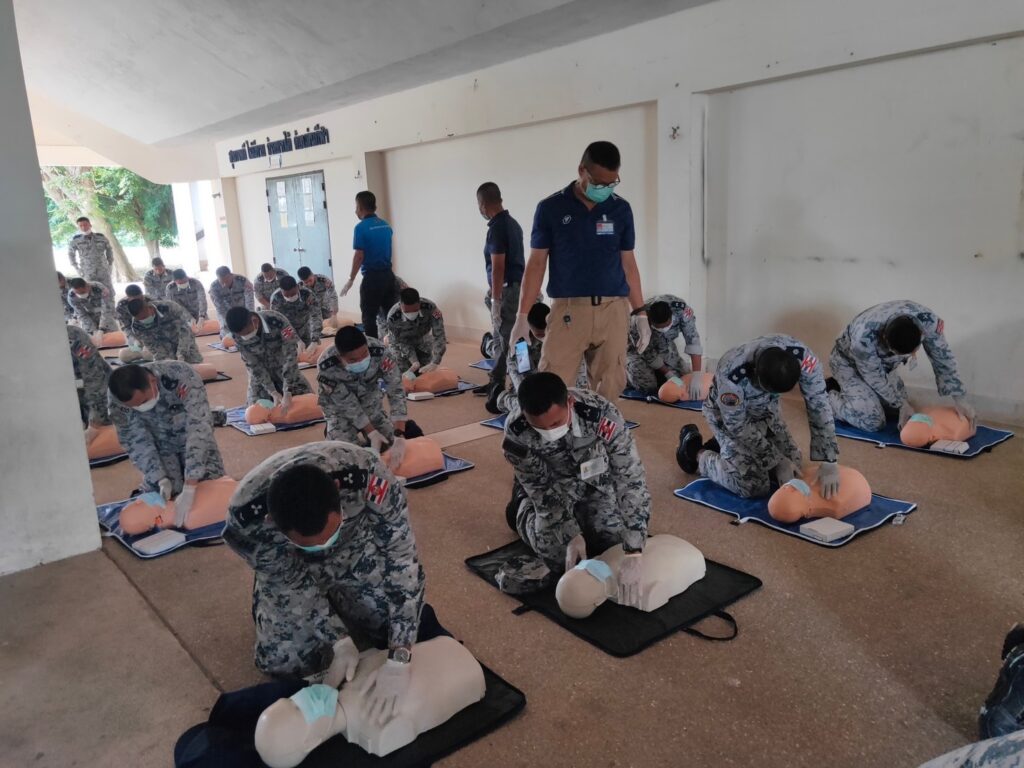 เมื่อ ๑๕ พ.ย.๖๕ กองนาวิกเวชกิจ โรงพยาบาลอาภากรเกียรติวงศ์ ฐานทัพเรือัตหีบ สนับสนุนวิทยากรให้ความรู้ทฤษฏีและปฏิบัติในการปฐมพยาบาล การช่วยชีวิตขั้นพื้นฐานและการใช้เครื่อง AED แก่กำลังพล กองเรือฟริเกตที่ ๒ กองเรือยุทธการ ณ อาคารพลศึกษา ฐานทัพเรือสัตหีบ / รพ.อาภากรเกียรติวงศ์ ฐท.สส. / By ข่าวผู้บังคับบัญชา จำนวนคนดู : 2