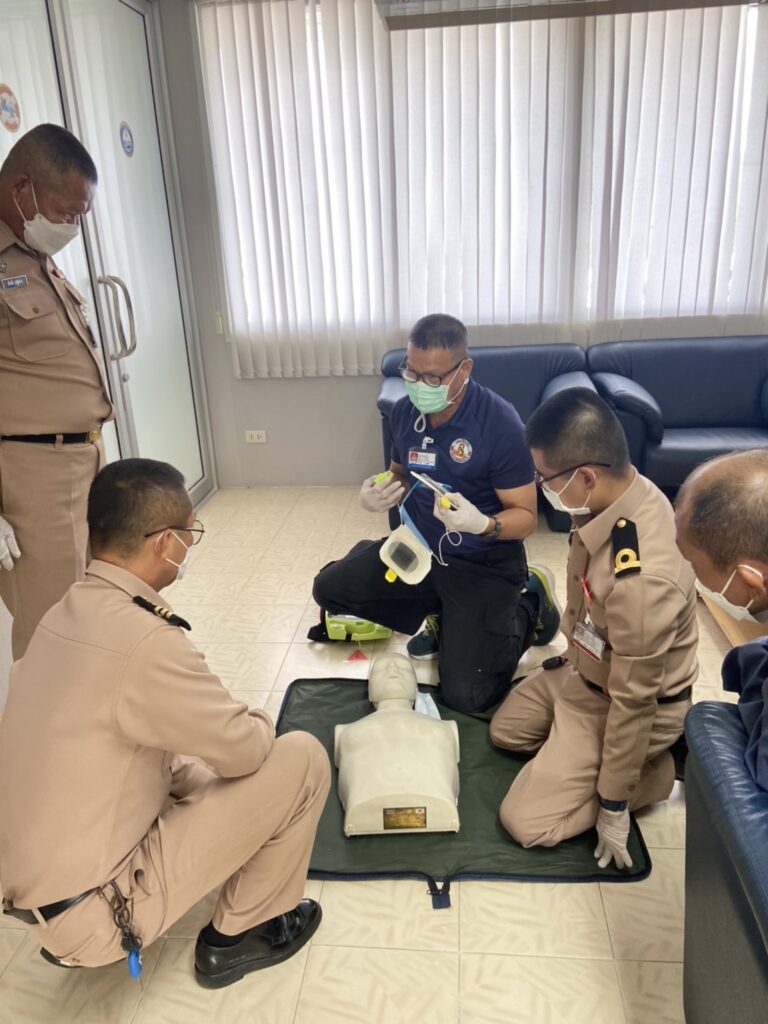 เมื่อ ๒๑ พ.ย.๖๕ กองนาวิกเวชกิจ โรงพยาบาลอาภากรเกียรติวงศ์ ฐานทัพเรือสัตหีบ สนับสนุนวิทยากรให้ความรู้ทฤษฏีและปฏิบัติในการปฐมพยาบาล การช่วยชีวิตขั้นพื้นฐานและการใช้เครื่อง AED แก่กำลังพล การท่าเรือสัตหีบ ฐท.สส. ณ ห้องประชุม การท่าเรือสัตหีบ ฐานทัพเรือสัตหีบ / รพ.อาภากรเกียรติวงศ์ ฐท.สส. / By ข่าวผู้บังคับบัญชา – จำนวนคนดู : 10