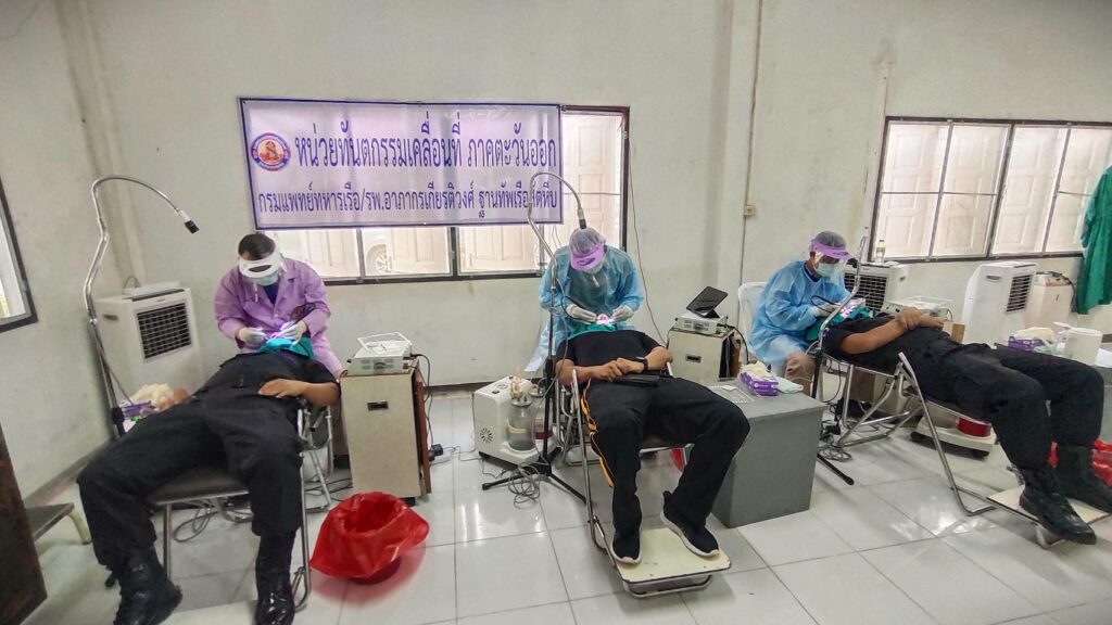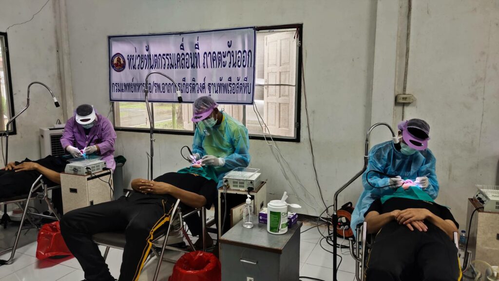 ระหว่าง ๒๒ – ๒๔ พ.ย.๖๕ กองทันตสุขภาพ ศทก รพ.อาภากรเกียรติงศ์ ฐท.สส ร่วมกับ ศูนย์ทัตกรรมกรมแพทย์ทหารเรือ จัดกิจกรรมโครงการออกหน่วยทันตกรรมเคลื่อนที่ภาคตะวันออก(ค่ายเทวาพิทักษ์) ให้กับกำลังพล ทร. ให้กับกำลัง ทร. ที่ปฏิบัติงานตามแนวชายแดนจันทบุรี ตราด เพื่อให้กำลังพลได้รับการดูแลรักษาด้านทันตกรรม โดยให้บริการขูดหินปูนและถอนฟัน ณ หน่วยเฉพาะกิจทหารพรานนาวิกโยธิน ค่ายเทวาพิทักษ์ ต.คลองใหญ่ อ.โป่งน้ำร้อน จว.จันทบุรี / รพ.อาภากรเกียรติวงศ์ ฐท.สส. / By ข่าวผู้บังคับบัญชา – จำนวนคนดู : 12