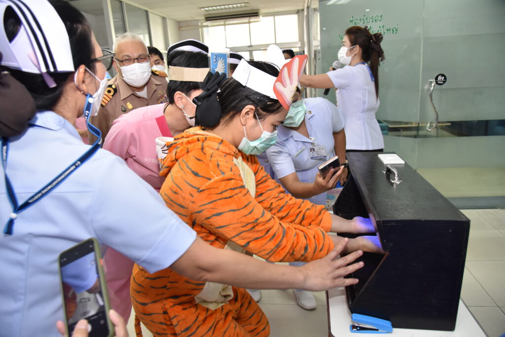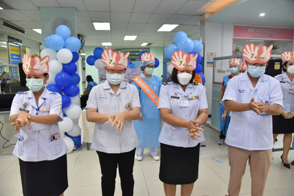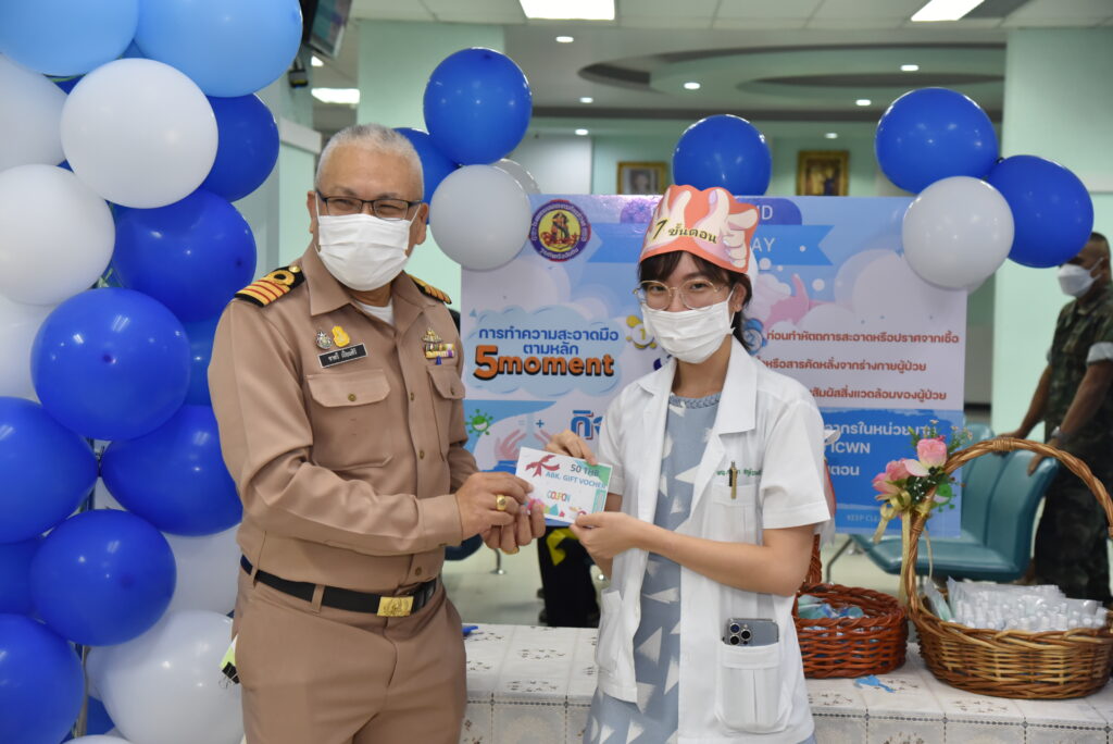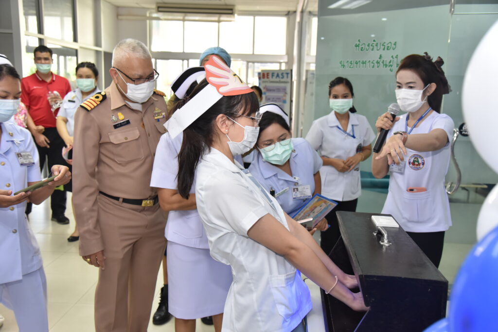 เมื่อ ๓๐ พ.ย.๖๕ น.อ.ชาตรี เปี่ยมศิริ รอง ผอ.รพ.อาภากรเกียรติวงศ์ ฐท.สส. เป็นประธานเปิดงาน “กิจกรรมรณรงค์การล้างมือ 5 Moment” ทางคณะกรรมการป้องกันและควบคุมการติดเชื้อของโรงพยาบาลได้ตระหนักถึงความสำคัญใน เรื่อง การล้างมือของบุคลากรในโรงพยาบาล เพื่อลดการแพร่กระจายเชื้อ และตามมาตรฐาน HA ณ บริเวณห้องโถงห้องตรวจโรคผู้ป่วยนอก รพ.อาภากรเกียรติวงศ์ ฐท.สส. / รพ.อาภากรเกียรติวงศ์ ฐท.สส. / By ข่าวผู้บังคับบัญชา – จำนวนคนดู : 10
