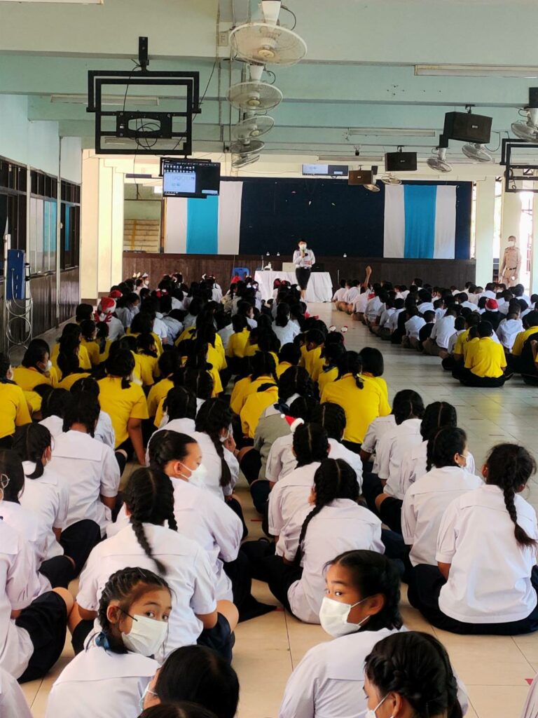 เมื่อ ๒๒ ธ.ค.๖๕ แผนกสร้างเสริมสุขภาพ กองเวชกรรมป้องกัน รพ.อาภากรเกียรติวงศ์ ฐท.สส. ดำเนินการให้ความรู้เรื่องการป้องกันโรคท้องร่วงและโรคที่มักเกิดตามฤดูกาล ให้แก่นักเรียนชั้น ป.๑-ม.๓ รร.นาวิกโยธินบูรณะ ณ รร.นาวิกโยธินบูรณะ