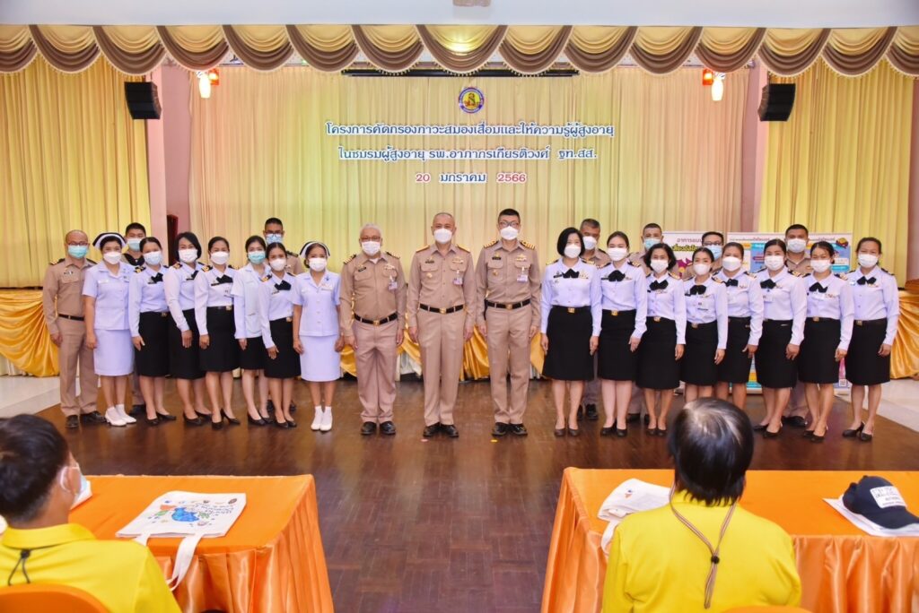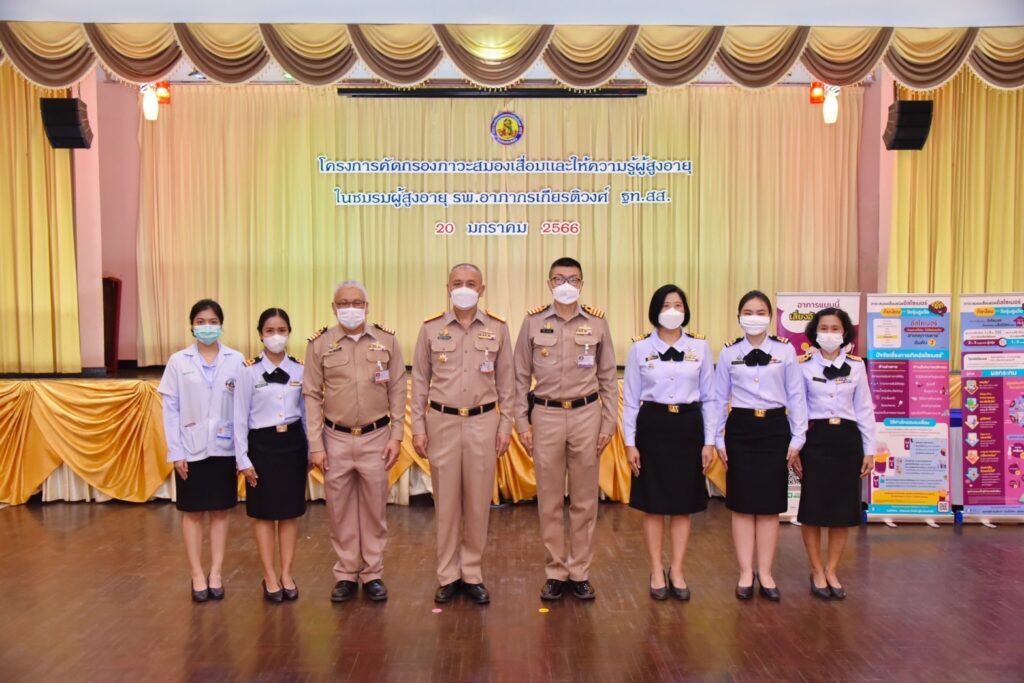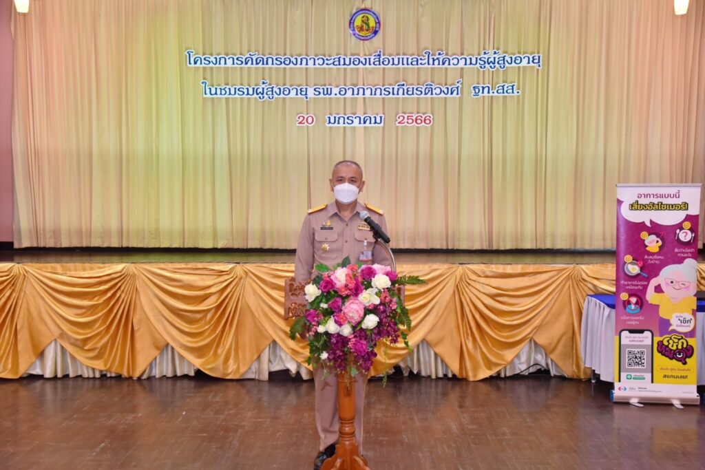 เมื่อ ๒๐ ม.ค.๖๖ พล.ร.ต.ประทีป ตังติสานนท์ ผอ.รพ.อาภากรเกียรติวงศ์ ฐท.สส. เป็นประธานเปิดโครงการคัดกรองภาวะสมองเสื่อมและให้ความรู้ผู้สูงอายุในชมรมผู้สูงอายุ รพ.อาภากรเกียรติวงศ์ ฐท.สส. เพื่อประเมินคัดกรองสุขภาพและภาวะสมองเสื่อมในผู้สูงอายุ และนำผู้ที่มีภาวะสมองเสื่อมเข้าสู่กระบวนการรักษาโดยแพทย์ ส่งเสริมสนับสนุนให้มีการส่งเสริมสุขภาพกายและสุขภาพจิตผู้สูงอายุ เพื่อป้องกันภาวะสมองเสื่อมในผู้สูงอายุและดูแลและส่งเสริมสุขภาพผู้สูงอายุ ณ ห้องประชุมกฤษณจันทร์ กิจการสโมสร รพ.อาภากรเกียรติวงศ์ ฐท.สส. / รพ.อาภากรเกียรติวงศ์ ฐท.สส. / By ข่าวผู้บังคับบัญชา – จำนวนคนดู : 8