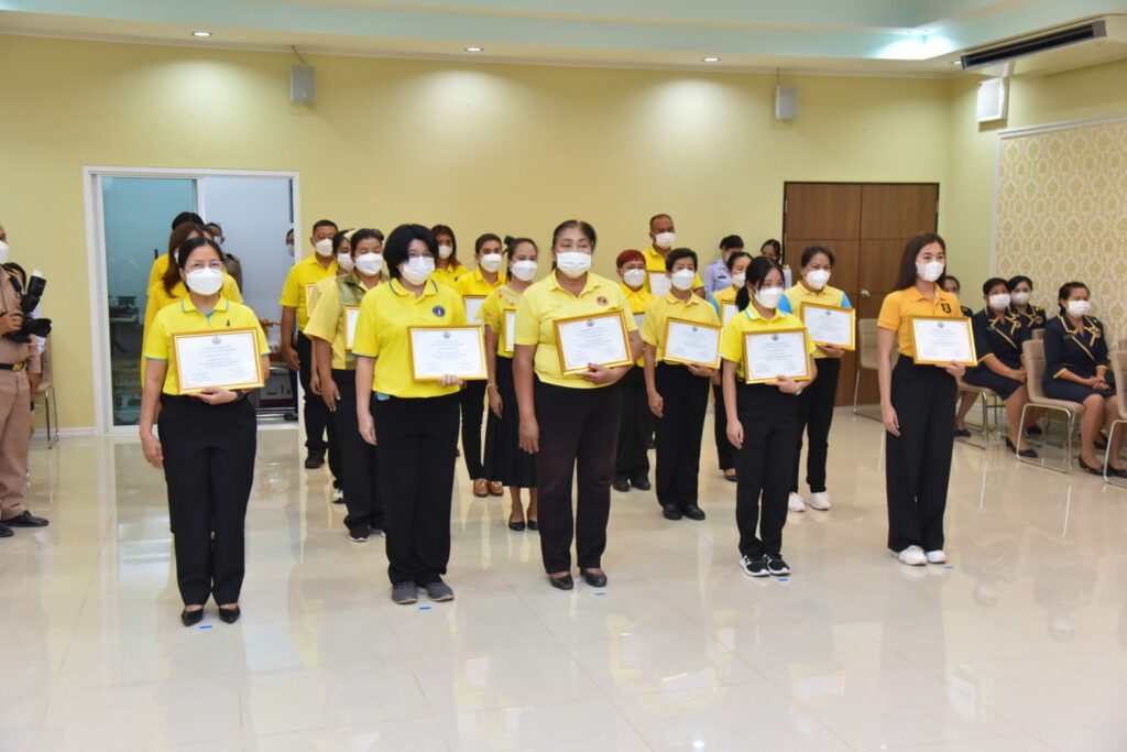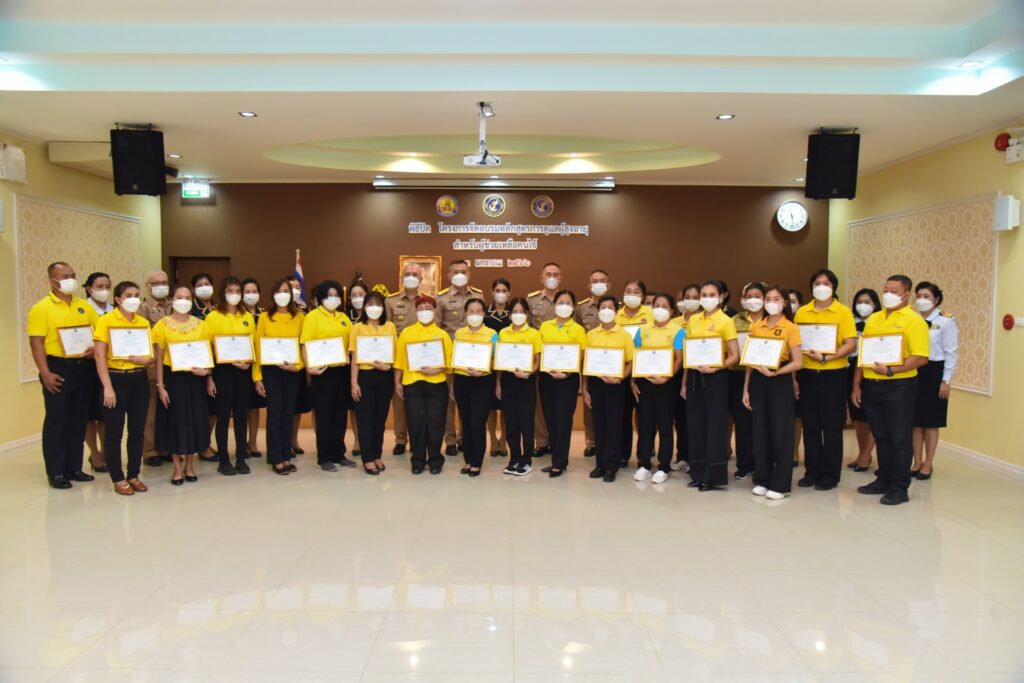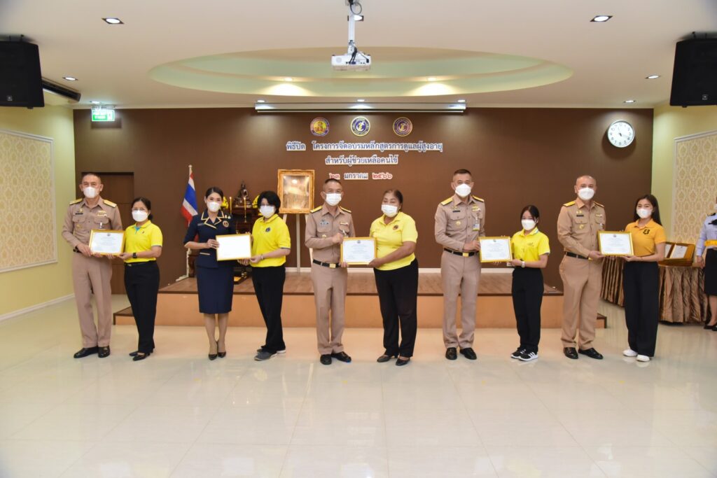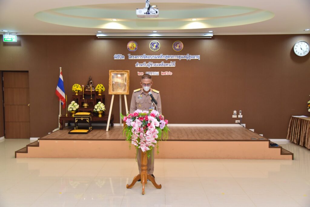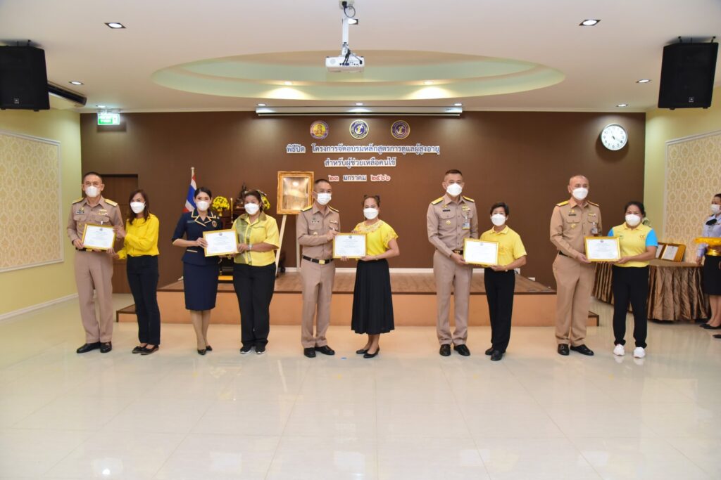 เมื่อ ๒๓ ม.ค.๖๖ พล.ร.ท.สุทิน หลายเจริญ ผบ.ฐท.สส. พร้อมด้วยคุณนุชนภาภรณ์ หลายเจริญ ประธานชมรมภริยาฐานทัพเรือสัตหีบ เป็นประธานในพิธีปิดการอบรม “หลักสูตรการดูแลผู้สูงอายุสำหรับผู้ช่วยเหลือคนไข้” พร้อมมอบใบประกาศเกียรติคุณ โครงการอบรมหลักสูตรการดูแลผู้สูงอายุสำหรับผู้ช่วยเหลือคนไข้ เพื่อเผยแพร่ความรู้และพัฒนาทักษะการดูแลผู้สูงอายุให้กับข้าราชการและครอบครัวทหารเรือ ณ ห้องประชุมลุมพิกานนท์ รพ.อาภากรเกียรติวงศ์ ฐท.สส. / รพ.อาภากรเกียรติวงศ์ ฐท.สส. / By ข่าวผู้บังคับบัญชา – จำนวนคนดู : 6