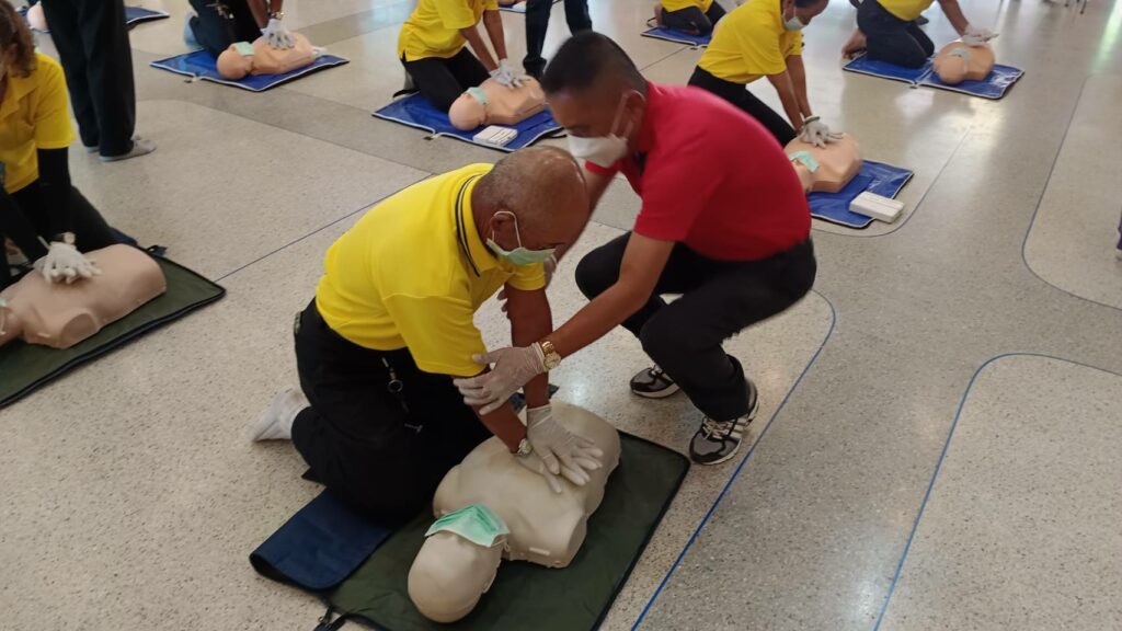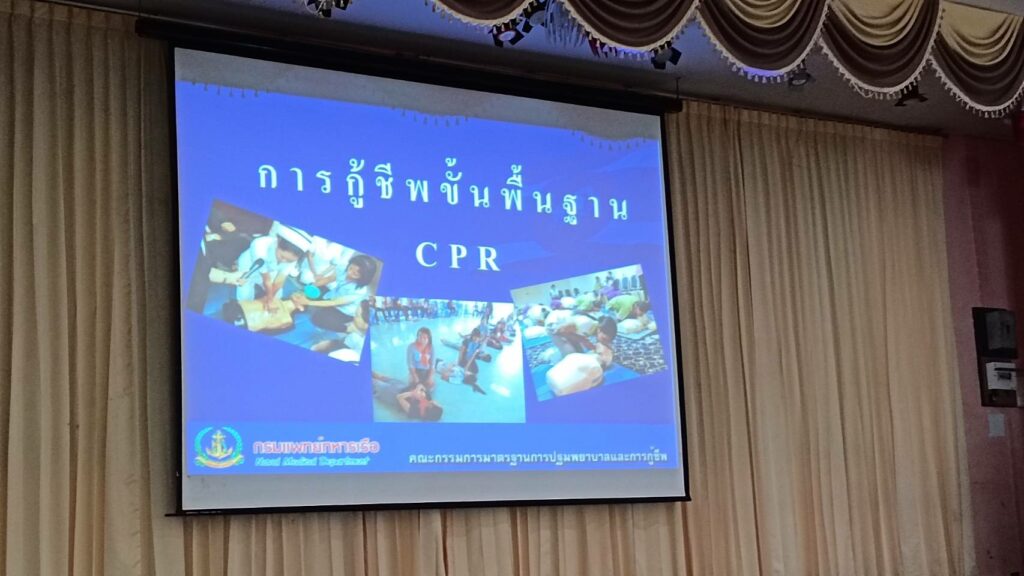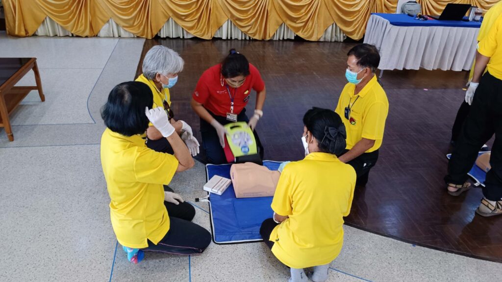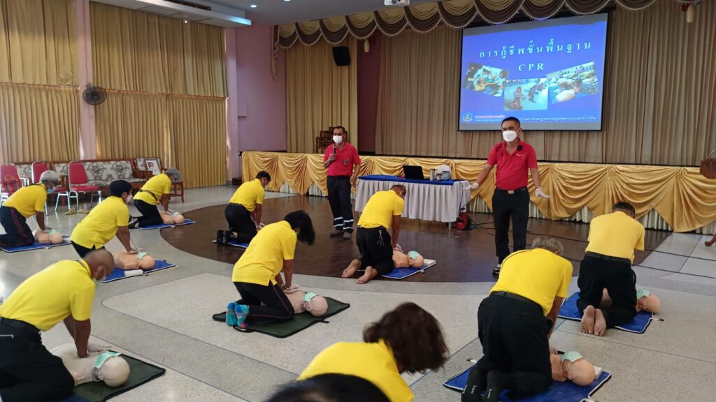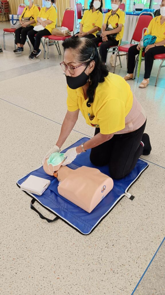 เมื่อ ๘ ก.พ.๖๖ กองนาวิกเวชกิจ รพ.อาภากรเกียรติวงศ์ ฐท.สส. สนับสนุนวิทยากรให้ความรู้ทฤษฎีและปฏิบัติในการปฐมพยาบาล การช่วยชีวิตขั้นพื้นฐานและการใช้เครื่อง AED แก่ ชมรมผู้สูงอายุ รพ.ฯ ณ สโมสร รพ.อาภากรเกียรติวงศ์ ฐท.สส. / รพ.อาภากรเกียรติวงศ์ ฐท.สส. / By ข่าวผู้บังคับบัญชา – จำนวนคนดู : 7