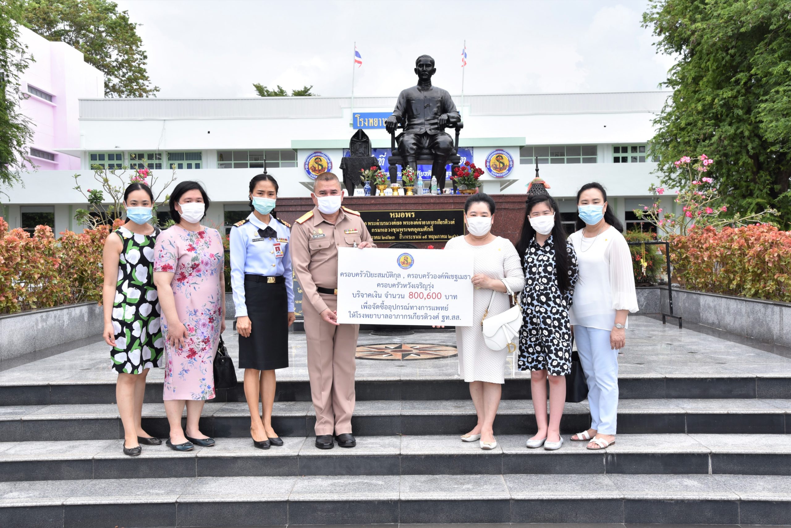 ๒๐ ก.ค. ๖๓ พล.ร.ต.ชลธร สุวรรณกิตติ ผอ.รพ.อาภากรเกียรติวงศ์ ฐท.สส. รับมอบเงินบริจาค จำนวน ๘๐๐,๖๐๐ บาท เพื่อจัดซื้ออุปกรณ์ทางการแพทย์ให้แก่ รพ.อาภากรเกียรติวงศ์ ฐท.สส. ฯ