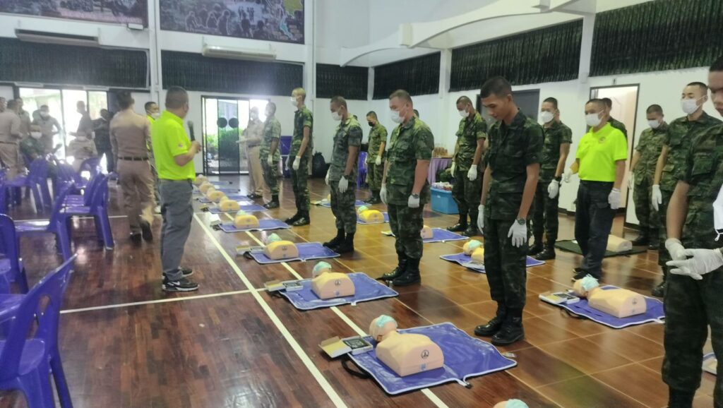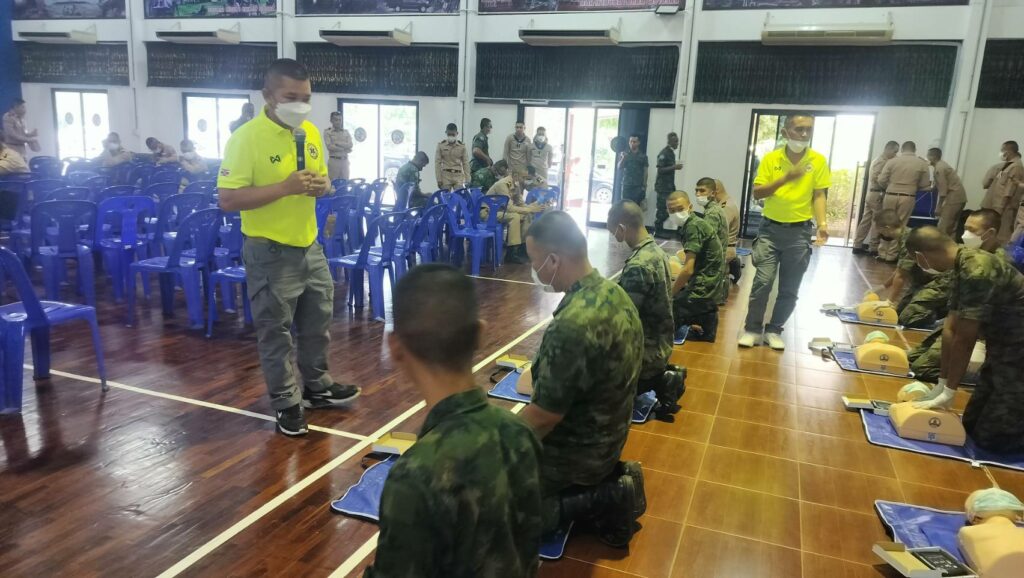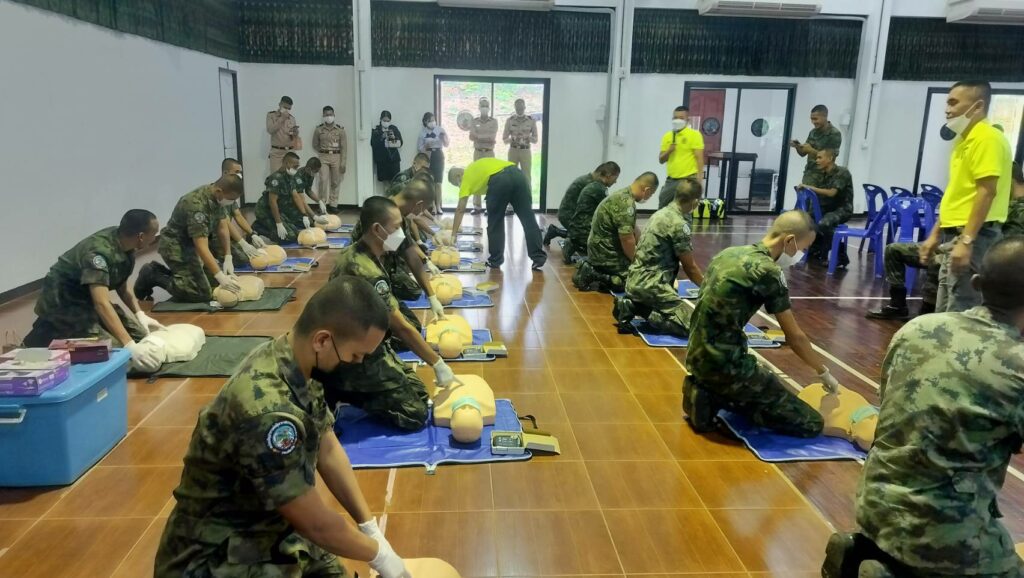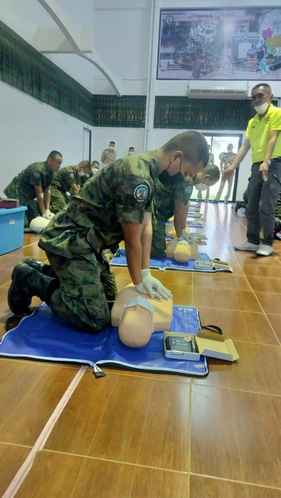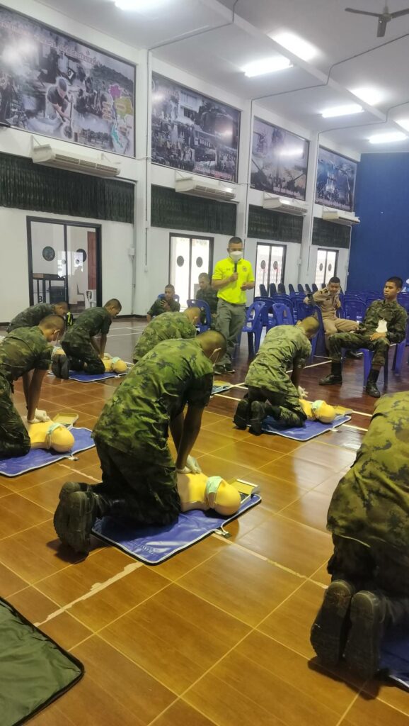 เมื่อ ๒๗ เม.ย.๖๖ กองนาวิกเวชกิจ รพ.อาภากรเกียรติวงศ์ ฐท.สส. สนับสนุนวิทยากรให้ความรู้ทฤษฏีและปฏิบัติ ในการปฐมพยาบาล การช่วยชีวิตขั้นพื้นฐานและการใช้เครื่อง AED ให้แก่ กำลังพล บก.สอ.รฝ.และร้อยบก.สอ.รฝ. ณ อาคารป้องนภาและรักษาฝั่ง / รพ.อาภากรเกียรติวงศ์ ฐท.สส. / By ข่าวผู้บังคับบัญชา – จำนวนคนดู : 12