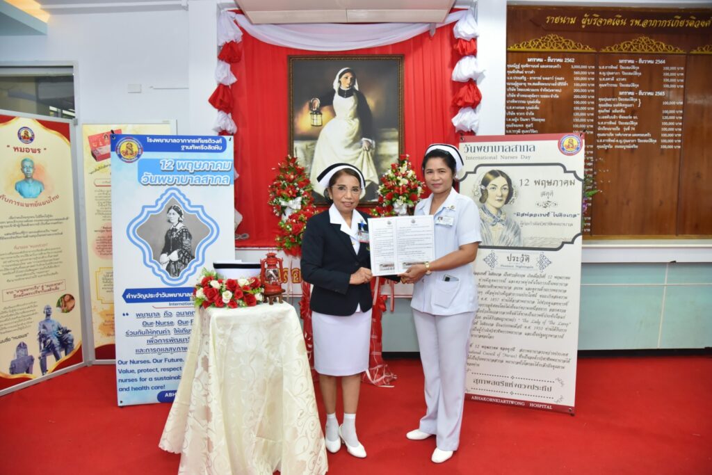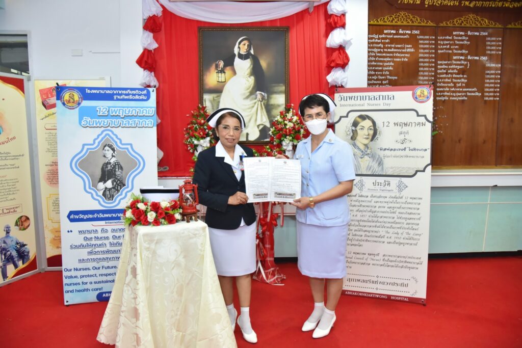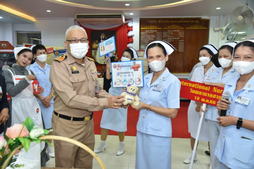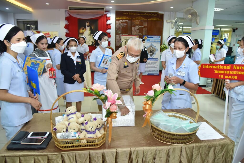 เมื่อ ๑๒ พ.ค.๖๖ น.อ.ชาตรี เปี่ยมศิริ รอง.ผอ.รพ.อาภากรเกียรติวงศ์ ฐท.สส. เป็นประธานในพิธีเปิดกิจกรรม “วันพยาบาลสากล” โดยผ่านคำขวัญวันพยาบาลสากลประจำปี ๒๕๖๖ “พยาบาลคืออนาคตของเราร่วมกันให้คุณค่า ให้เกียรติ และลงทุนเพื่อการพัฒนาวิชาชีพ และการดูแลอย่างยั่งยืน” Our Nurse Our Future Value, Protect, Respect and invest in our nurse for a sustainable for nursing and health care ณ บริเวณส่วนตรวจโรคผู้ป่วยนอก รพ.อาภากรเกียรติวงศ์ ฐท.สส.