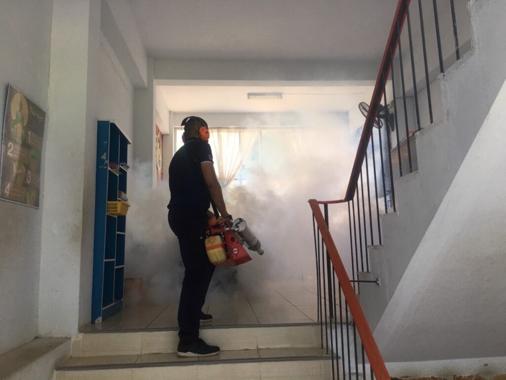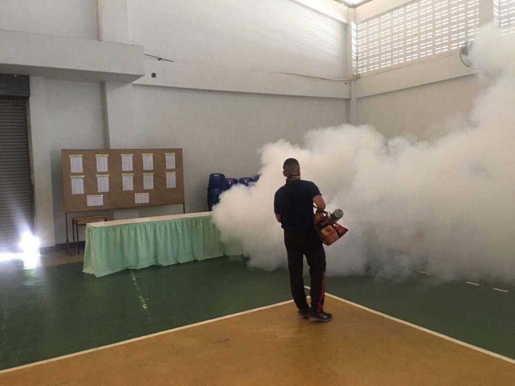 เมื่อ ๑๑ พ.ค.๖๖ แผนกอนามัยสิ่งแวดล้อม กองเวชกรรมป้องกัน รพ.อาภากรเกียรติวงศ์ ฐท.สส. สนับสนุน เจ้าหน้าที่เนินการพ่นหมอกควัน ให้แก่โรงเรียนสัตหีบ (กร.,ฐท.สส.) / รพ.อาภากรเกียรติวงศ์ ฐท.สส. / By ข่าวผู้บังคับบัญชา – จำนวนคนดู : 6