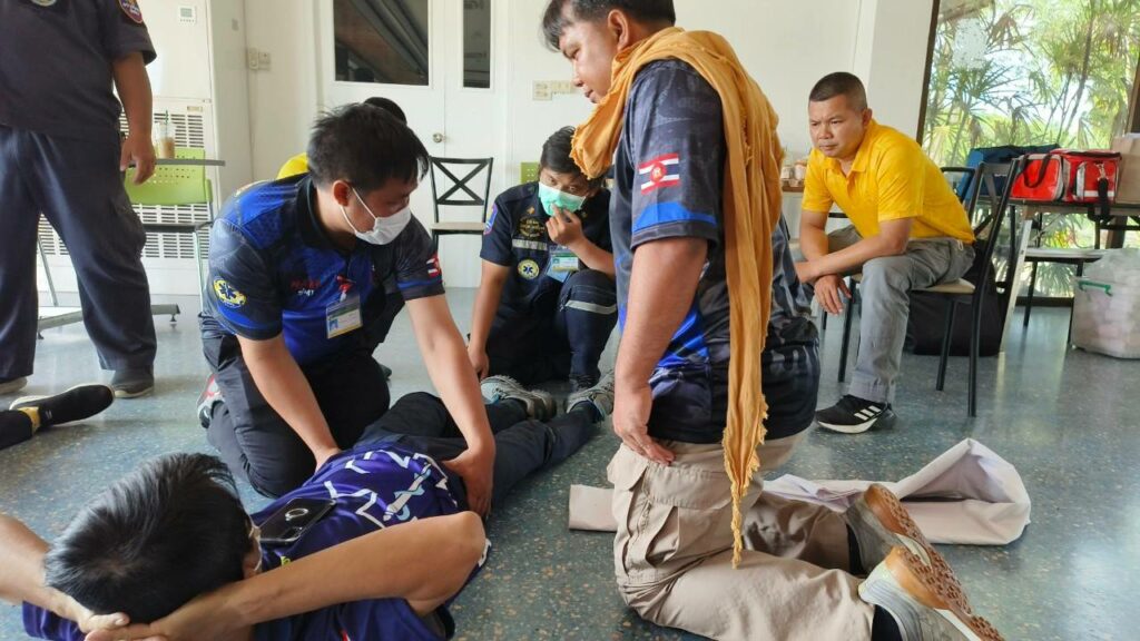 เมื่อ ๔ มิ.ย.๖๖ ศูนย์รับแจ้งเหตุและสั่งการด้านการแพทย์ทางทะเล และ ผอ.กองนาวิกเวชกิจ รพ.อาภากรเกียรติวงศ์ ฐท.สส. สนับสนุนวิทยากรให้ความรู้ทฤษฏีและปฏิบัติ หลักสูตรปฏิบัติการแพทย์ขั้นพื้นฐานและช่วยปฏิบัติการแพทย์ขั้นสูง (EMT) อบจ.ชลบุรี รุ่นที่ ๒ สำหรับหน่วยปฏิบัติการแพทย์ฉุกเฉิน ของ จว.ชลบุรี ณ อาคารบริการระบบสุขภาพ รพ.สมเด็จพระนางเจ้าสิริกิติ์ พร.