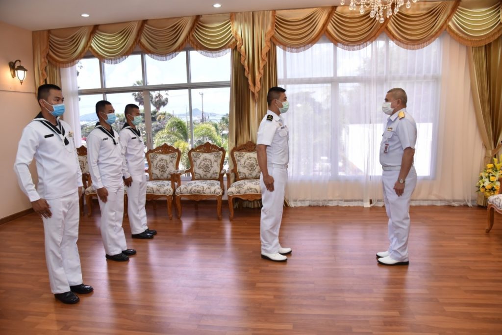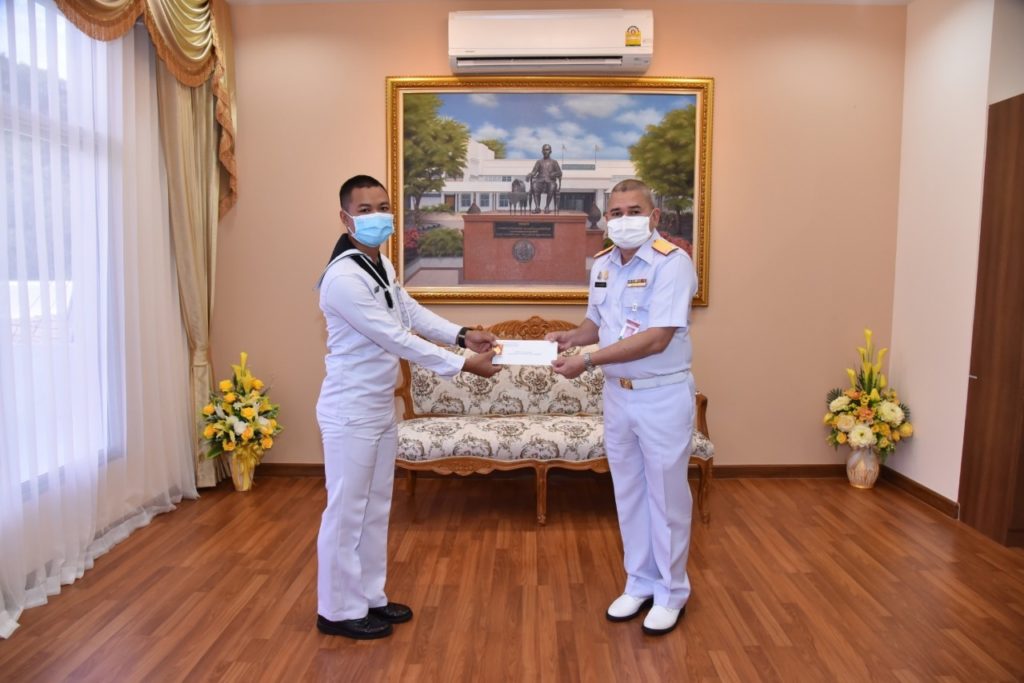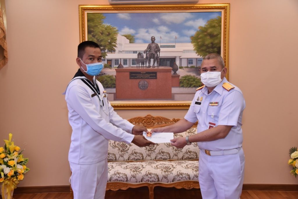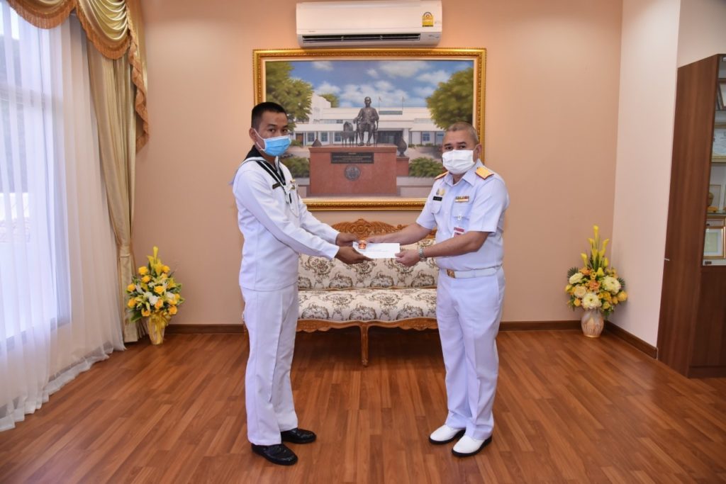 ๒๔ ก.ค. ๖๓ พล.ร.ต.ชลธร สุวรรณกิตติ ผอ.รพ.อาภากรเกียรติวงศ์ ฐท.สส. กล่าวให้โอวาทพร้อมทั้งมอบเงินเพื่อเป็นขวัญและกำลังใจแก่ทหารกองประจำการ สังกัด รพ.อาภากรเกียรติวงศ์ ฐท.สส. ผลัดที่ ๓ (๓/๖๑) ฯ