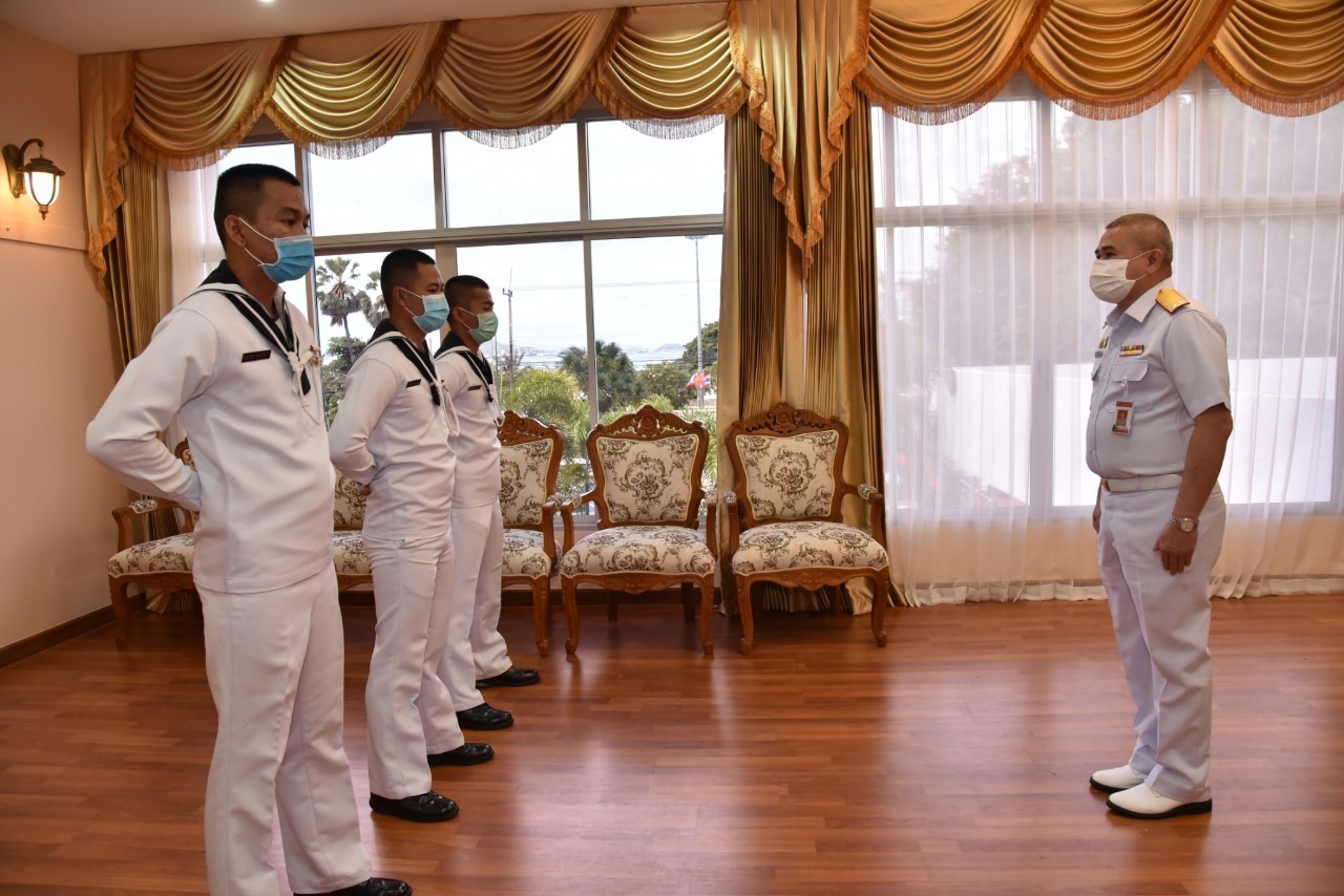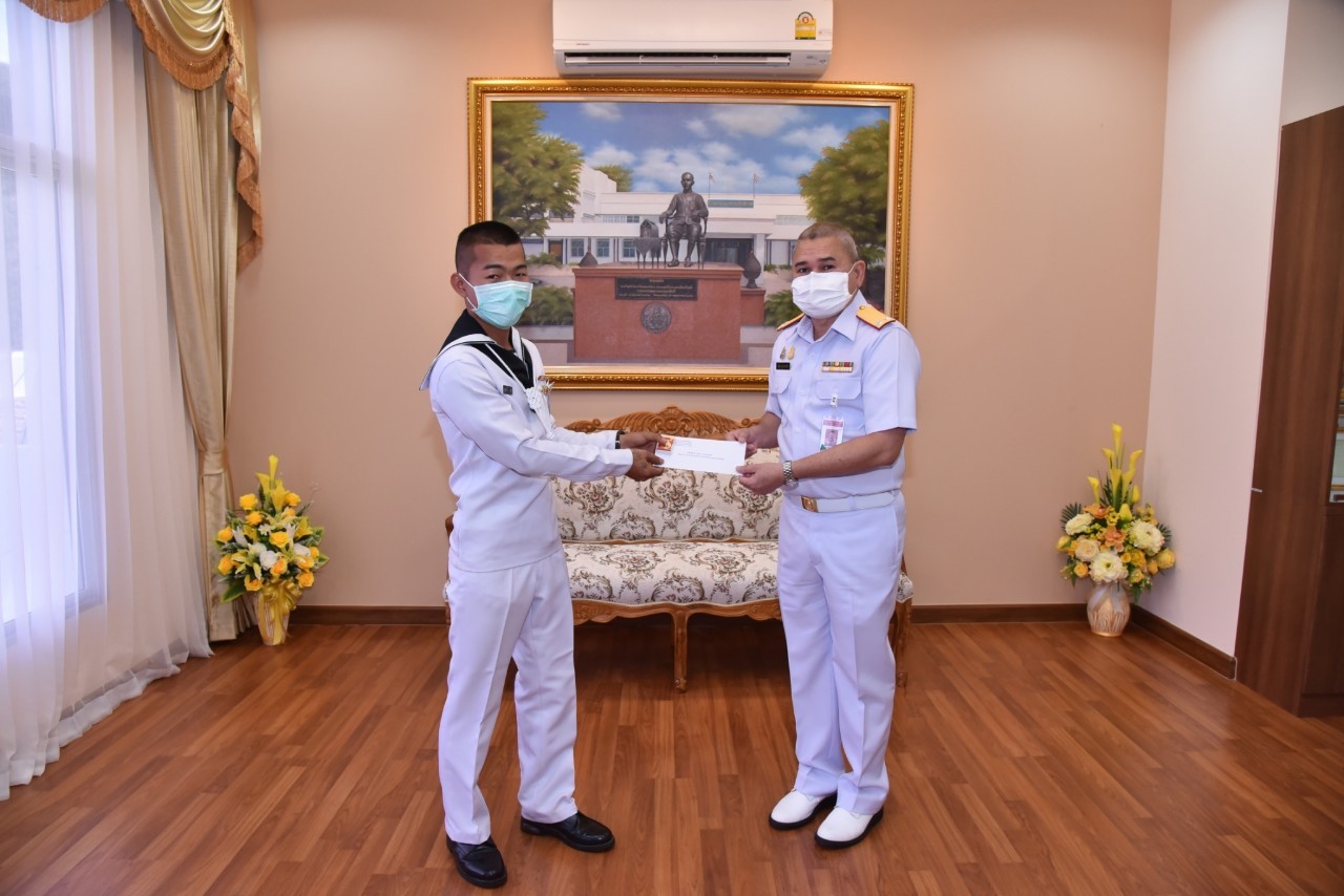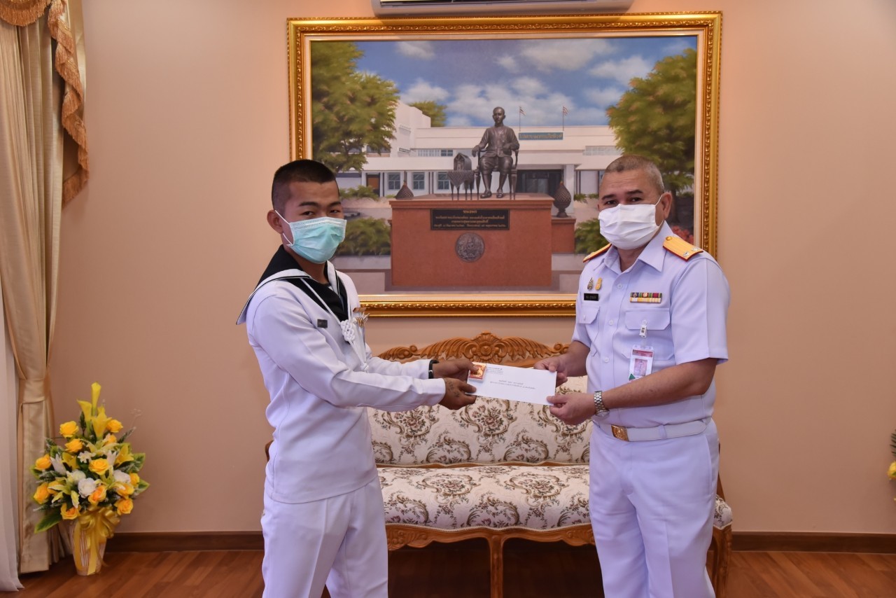 ๒๔ ก.ค. ๖๓ พล.ร.ต.ชลธร สุวรรณกิตติ ผอ.รพ.อาภากรเกียรติวงศ์ ฐท.สส. กล่าวให้โอวาทพร้อมทั้งมอบเงินเพื่อเป็นขวัญและกำลังใจแก่ทหารกองประจำการ สังกัด รพ.อาภากรเกียรติวงศ์ ฐท.สส. ผลัดที่ ๓ (๓/๖๑) ฯ