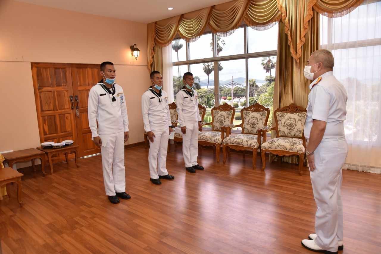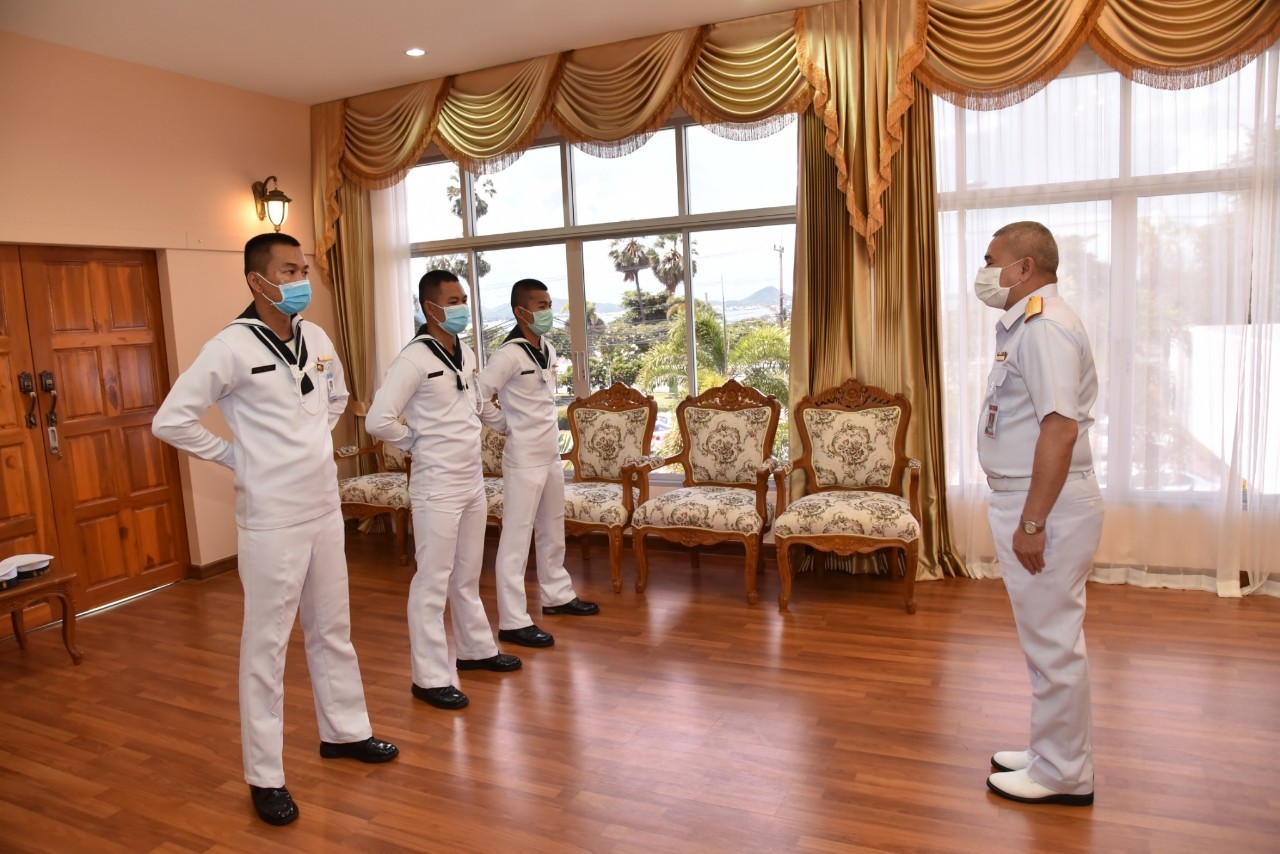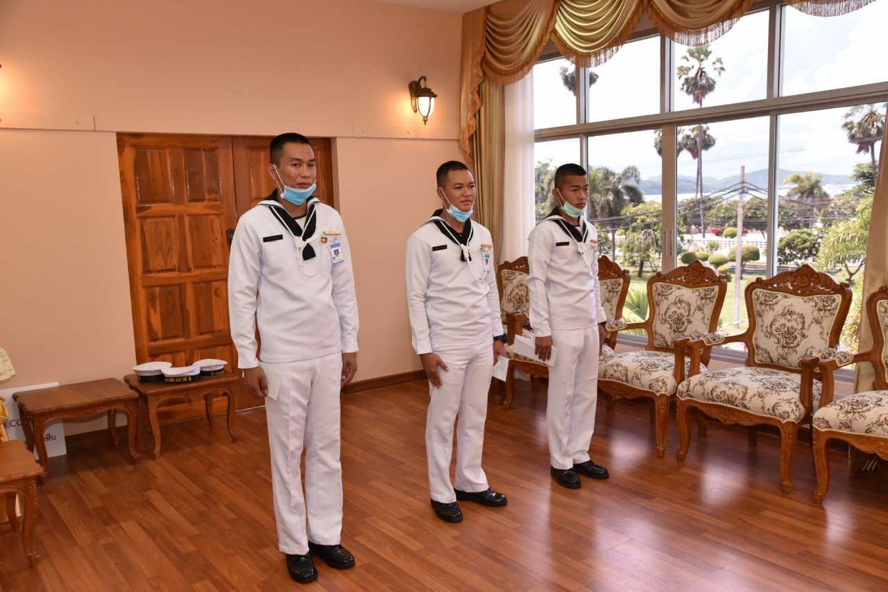 ๒๔ ก.ค. ๖๓ พล.ร.ต.ชลธร สุวรรณกิตติ ผอ.รพ.อาภากรเกียรติวงศ์ ฐท.สส. กล่าวให้โอวาทพร้อมทั้งมอบเงินเพื่อเป็นขวัญและกำลังใจแก่ทหารกองประจำการ สังกัด รพ.อาภากรเกียรติวงศ์ ฐท.สส. ผลัดที่ ๓ (๓/๖๑) ฯ