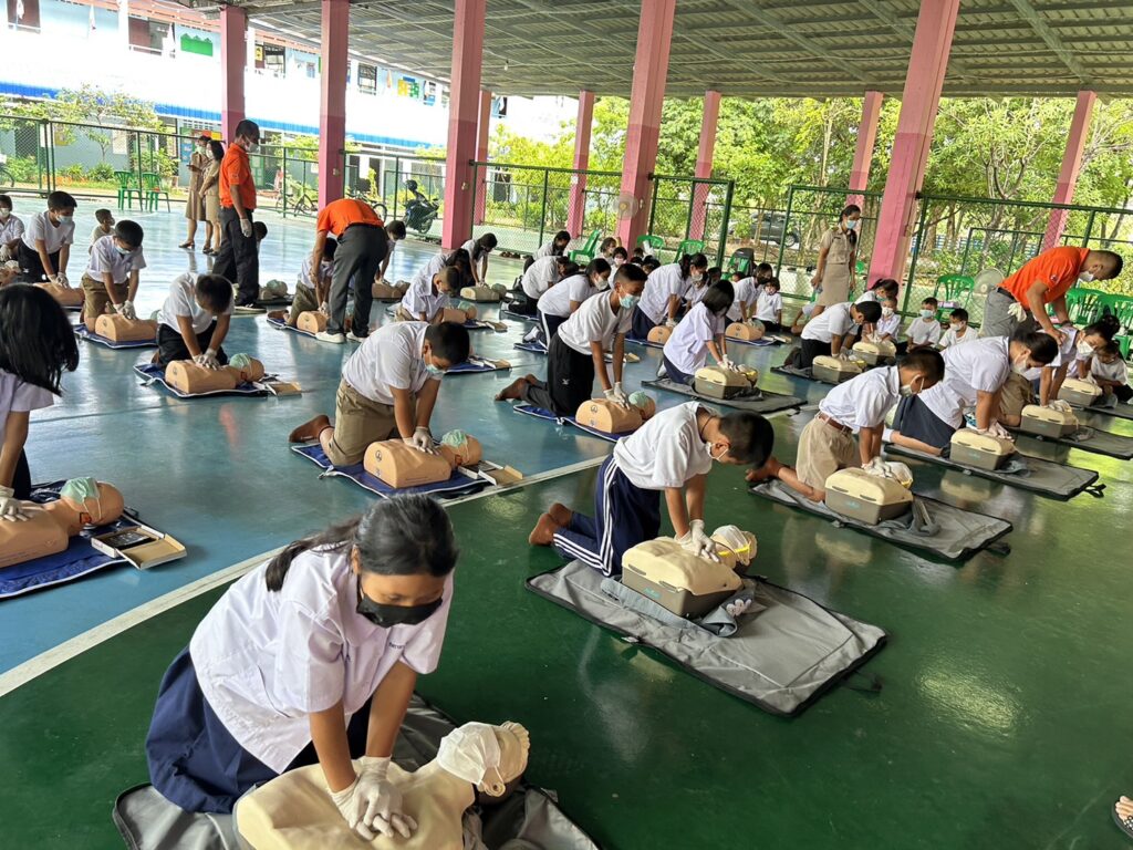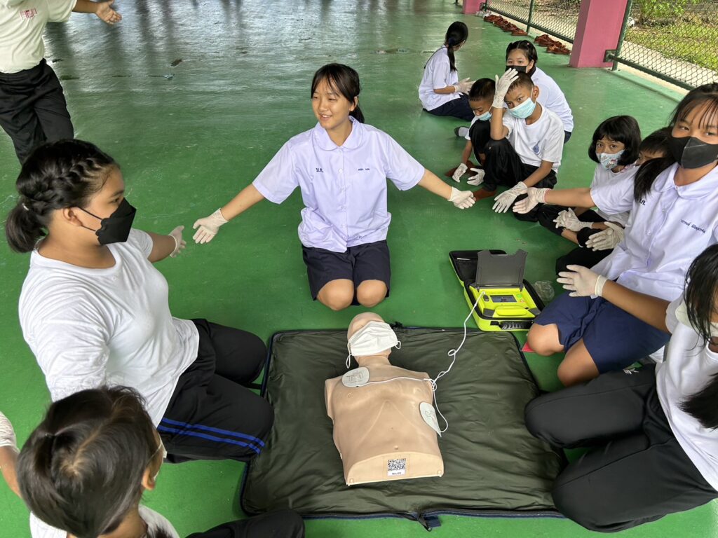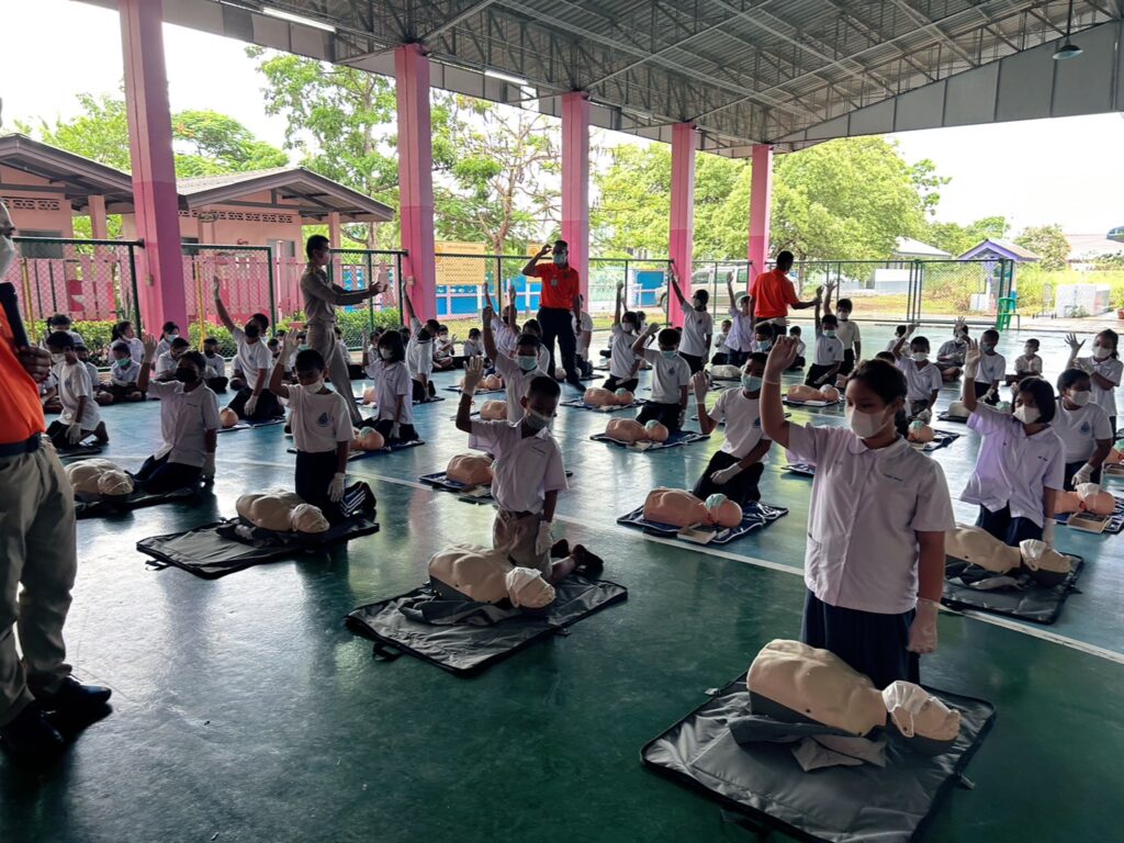 เมื่อ ๑๐ ก.ค.๖๖ ศูนย์รับแจ้งเหตุและสั่งการด้านการแพทย์ทางทะเล และกองนาวิเวชกิจ รพ.อาภากรเกียรติวงศ์ ฐท.สส. สนับสนุนวิทยากรให้ความรู้ทฤษฏีและปฏิบัติ ในการปฐมพยาบาล การช่วยชีวิตขั้นพื้นฐานและการใช้เครื่อง AED สำหรับคณะครู นักเรียน รร.บ้านคลองทราย ณ อาคารอเนกประสงค์ รร.บ้านคลองทราย อ.บ้านฉาง จว.ระยอง / รพ.อาภากรเกียรติวงศ์ ฐท.สส. / By ข่าวผู้บังคับบัญชา จำนวนคนดู : 7