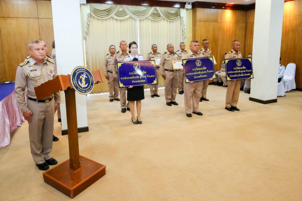 เมื่อ ๑๑ ก.ค.๖๖ พล.ร.ต.ประทีป ตังติสานนท์ ผอ.รพ.อาภากรเกียรติวงศ์ ฐท.สส. เข้าร่วมพิธีมอบรางวัลการประกวดบ้านพักและอาคารที่พักอาศัยของฐานทัพเรือสัตหีบ ตามโครงการ “รักษ์บ้านเรา รักษ์บ้านหลวง” โดยมี พล.ร.ท.สุทิน หลายเจริญ ผบ.ฐท.สส. เป็นประธานในพิธีมอบรางวัลฯ ในการนี้ อาคารหอพักพยาบาลนายเรือหญิงโสด รพ.ฯ ได้รับรางวัลชนะเลิศ ประเภทแฟลต / รพ.อาภากรเกียรติวงศ์ ฐท.สส. / By ข่าวผู้บังคับบัญชา จำนวนคนดู : 8