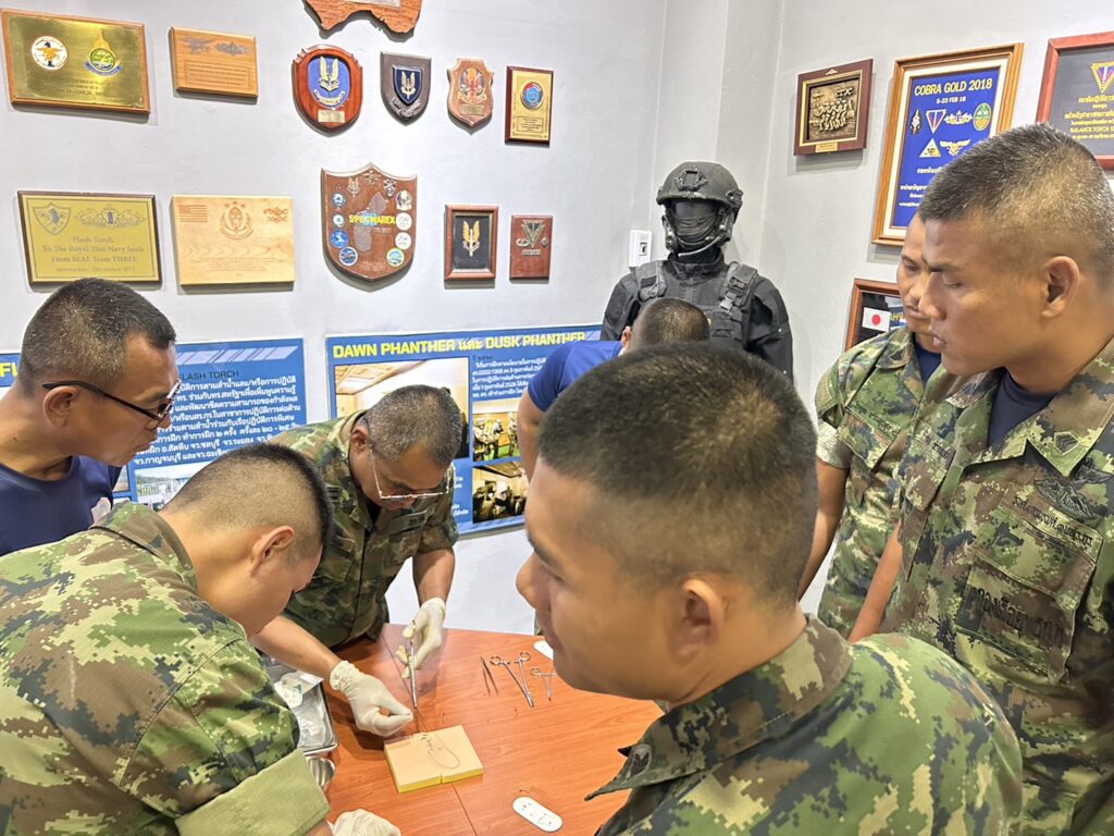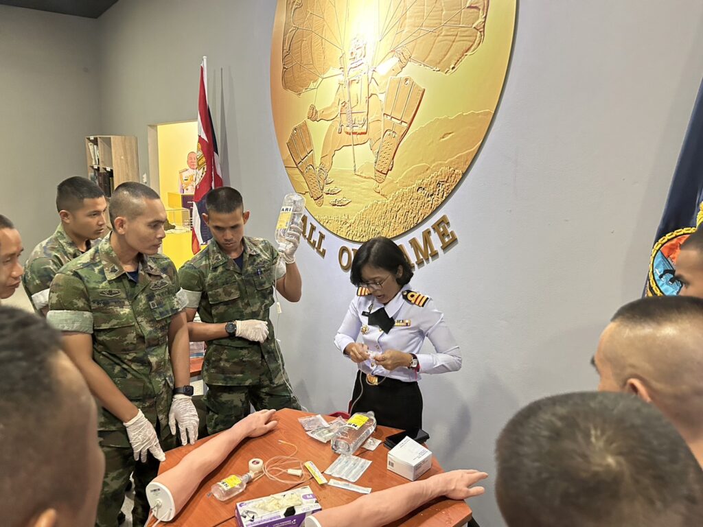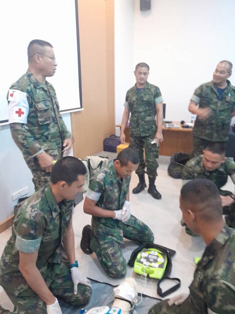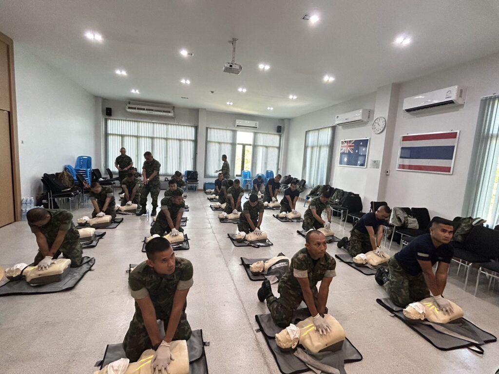 เมื่อ ๔ ก.ย.๖๖ กองนาวิกเวชกิจ รพ.อาภากรเกียรติวงศ์ ฐท.สส.  สนับสนุนวิทยากรให้ความรู้ทฤษฏีและปฏิบัติในการปฐมพยาบาล การช่วยชีวิตขั้นพื้นฐาน การใช้เครื่อง AED ให้แก่ กำลังพล นสร.กร. เพื่อเตรียมผลัดเปลี่ยนในพื้นที่ภาคใต้/ฉก.นย.ทร. ณ ห้องเรียนอาคารประวัติศาสตร์ นสร.กร. (ชั้นที่ ๒)