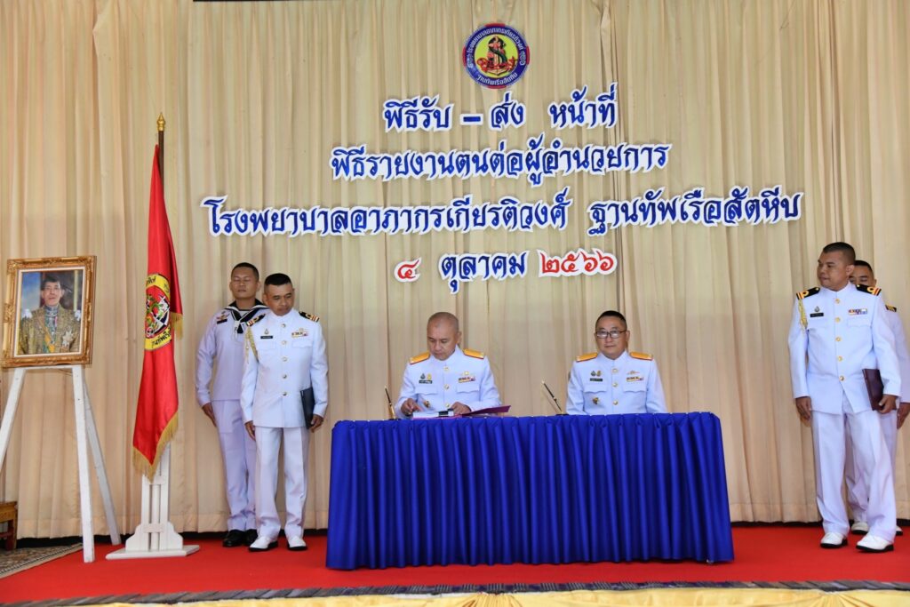 เมื่อ ๔ ต.ค.๖๖ พล.ร.ต.ประทีป ตังติสานนท์ ส่งมอบหน้าที่ ผอ.รพ.อาภากรเกียรติวงศ์ ฐท.สส. ให้ พล.ร.ต.สรรชัย เลิศวีระศิริกุล ณ ห้องประชุมกฤษณจันทร์ รพ.อาภากรเกียรติวงศ์ ฐท.สส. / รพ.อาภากรเกียรติวงศ์ ฐท.สส. / By ข่าวผู้บังคับบัญชา จำนวนคนดู : 22