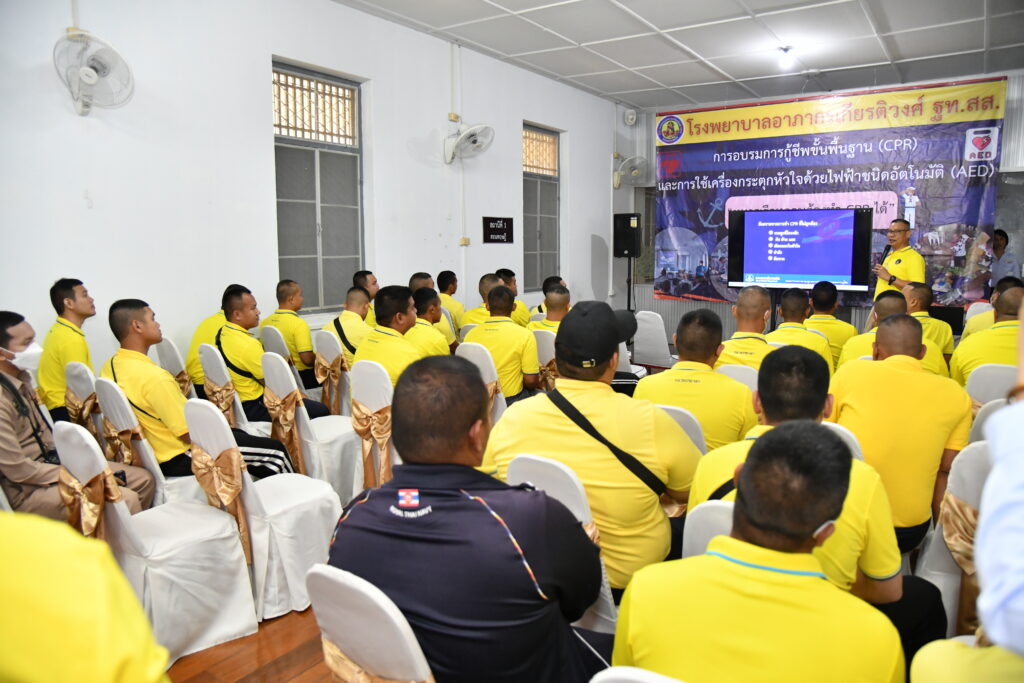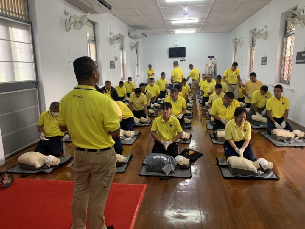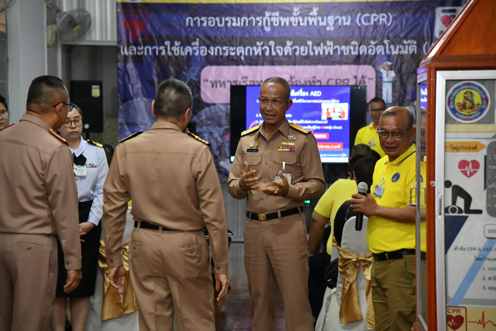 เมื่อ ๓๑ ต.ค.๖๖ พล.ร.ต.สรรชัย เลิศวีระศิริกุล ผอ.รพ.อาภากรเกียรติวงศ์ ฐท.สส. เข้าร่วม “โครงการพัฒนาทักษะการกู้ชีพ รพ.อาภากรเกียรติวงศ์ ฐท.สส.” ในการฝึกอบรมการกู้ชีพขั้นพื้นฐาน (Cardiopulmonary Resuscitation หรือ CPR) และกเครื่องฟื้นคืนคลื่นหัวใจไฟฟ้าแบบอัตโนมัติ (Automated External Defibrillator หรือ AED) ให้แก่ กำลังพลฐานทัพเรือสัตหีบ และกำลังพลกองทัพเรือในพื้นที่ภาคตะวันออก โดยมี พล.ร.ท.ชยุต นาเวศภูติกร ผบ.ฐท.สส. เป็นประธานในพิธีฯ ณ อาคารฝึกอบรมทักษะการกู้ชีพ รพ.อาภากรเกียรติวงศ์ ฐท.สส. / รพ.อาภากรเกียรติวงศ์ ฐท.สส. / By ข่าวผู้บังคับบัญชา จำนวนคนดู : 25
