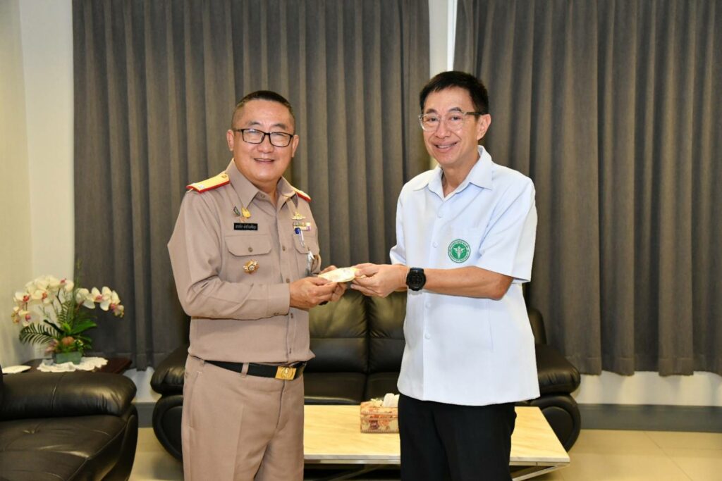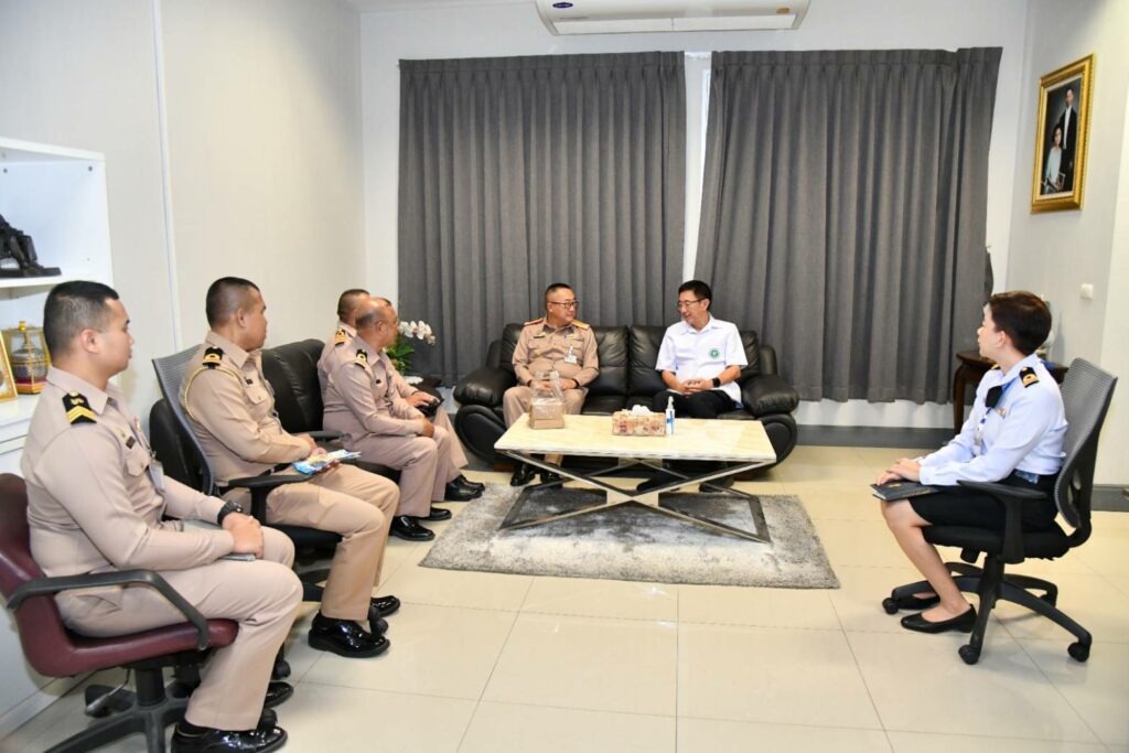 เมื่อ ๘ พ.ย.๖๖ พล.ร.ต.สรรชัย เลิศวีระศิริกุล ผอ.รพ.อาภากรเกียรติวงศ์ ฐท.สส. เข้าเยี่ยมคำนับ นพ.อภิรัต กตัญญุตานนท์ นายแพทย์สาธารณสุข จว.ชลบุรี เพื่อปรึกษาประสานความร่วมมือการปฏิบัติด้านต่างๆ ของระบบการปฏิบัติการด้านการแพทย์ระหว่างหน่วยงานให้เป็นไปในทิศทางเดียวกัน ณ สนง.สาธารณสุข จว.ชลบุรี / รพ.อาภากรเกียรติวงศ์ ฐท.สส. / By ข่าวผู้บังคับบัญชา จำนวนคนดู : 6