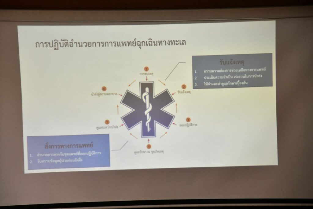 เมื่อ ๑๕ พ.ย.๖๖ พล.ร.ต.สรรชัย​ เลิศวีระศิริกุล​ ผอ.รพ.อาภากรเกียรติวงศ์​ ฐท.สส. พร้อมคณะ ได้เข้าเยี่ยมคำนับ​ พล.ร.ท.วัชระ พัฒนรัฐ​ จก.สสท.ทร.​ เพื่อหารือเกี่ยวกับการปฏิบัติอำนวยการแพทย์ฉุกเฉินทางทะเลในการพัฒนาระบบการสื่อสารของศูนย์รับแจ้งเหตุและสั่งการด้านการแพทย์ทางทะเล​ ให้สามารถครอบคลุมการสื่อสารด้านการแพทย์ในทะเลได้อย่างมีประสิทธิภาพ​ ซึ่งจะนำมาซึ่งประโยชน์และความปลอดภัยแก่ประชาชนและหน่วยเรือของกองทัพเรือที่ปฏิบัติงานในทะเล​ ให้ได้รับการช่วยเหลือด้านการแพทย์อย่างทันท่วงทีและเข้าถึง ณ ​ห้องประชุม​ สสท.ทร.