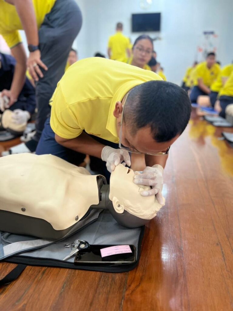 เมื่อ ๒๘ พ.ย.๖๖ กองนาวิกเวชกิจ รพ.อาภากรเกียรติวงศ์ ฐท.สส. สนับสนุนวิทยากรบรรยายให้ความรู้และฝึกอบรมการช่วยฟื้นคืนชีพขั้นพื้นฐาน (CPR) และการใช้เครื่องฟื้นคืนคลื่นหัวใจด้วยไฟฟ้าแบบอัตโนมัติ (AED) แก่กำลังพล กรง.ฐท.สส. ณ ห้องอบรมโครงการพัฒนาทักษะการกู้ชีพ รพ.อาภากรเกียรติวงศ์ ฐท.สส. / รพ.อาภากรเกียรติวงศ์ ฐท.สส. / By ข่าวผู้บังคับบัญชา จำนวนคนดู : 6