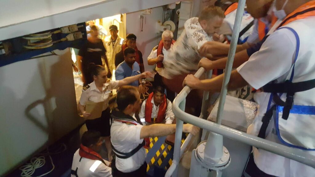 เมื่อ ๑๗ ธ.ค.๖๖ ศูนย์รับแจ้งเหตุและสั่งการด้านการแพทย์ทางทะเล รพ.อาภากรเกียรติวงศ์ ฐท.สส. และ ศรชล ภาค ๑ ได้รับแจ้งจาก ศูนย์รับแจ้งเหตุและสั่งการจังหวัดชลบุรี มีเหตุการณ์ผู้ป่วยชาย ๑ ราย อายุ ๕๐ ปี มีอาการ ปวดท้อง บริเวณขาหนีบรุนแรง ๒ ชั่วโมงก่อน บนเรือ Marella Discovery ต้องการส่งกลับผู้ป่วยบนเรือ เพี่อเข้ารักษายัง รพ.ฯ / รพ.อาภากรเกียรติวงศ์ ฐท.สส. / By ข่าวผู้บังคับบัญชา จำนวนคนดู : 7