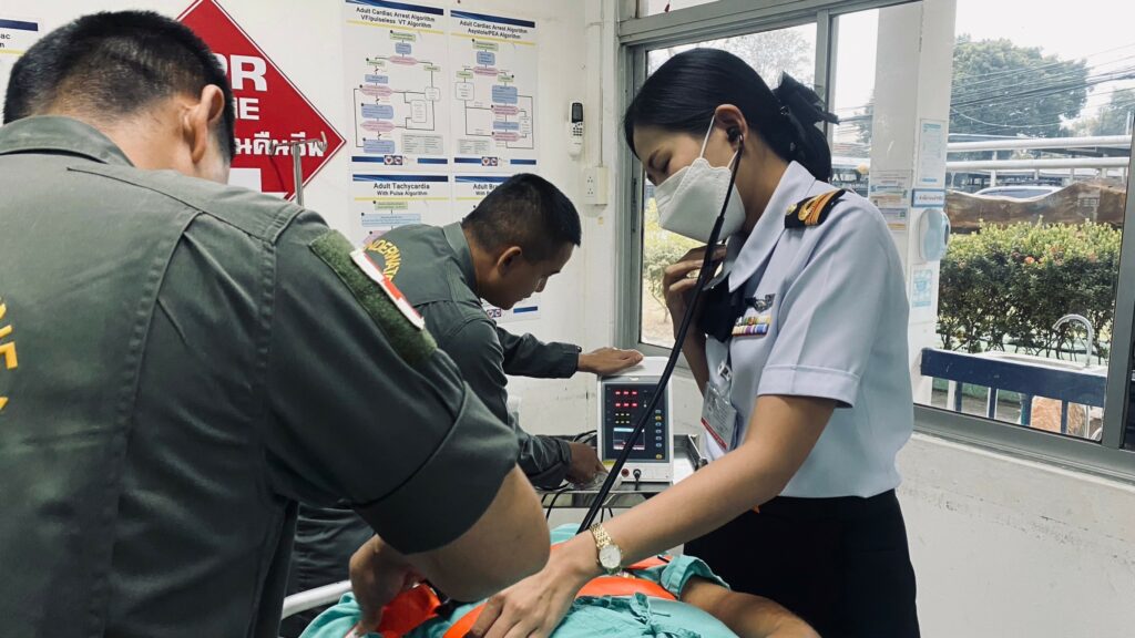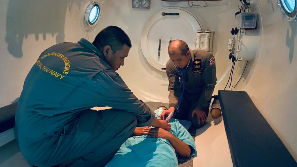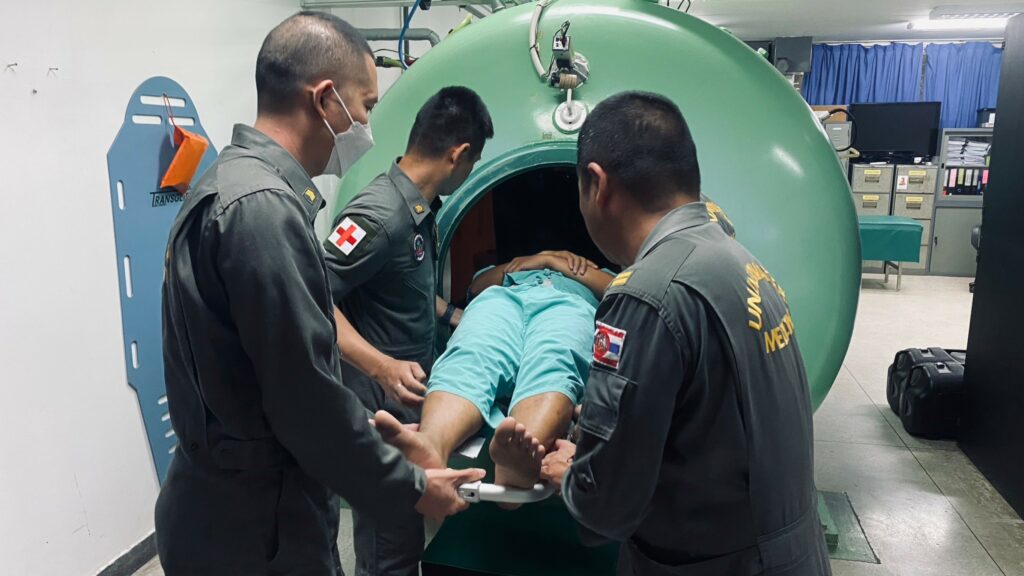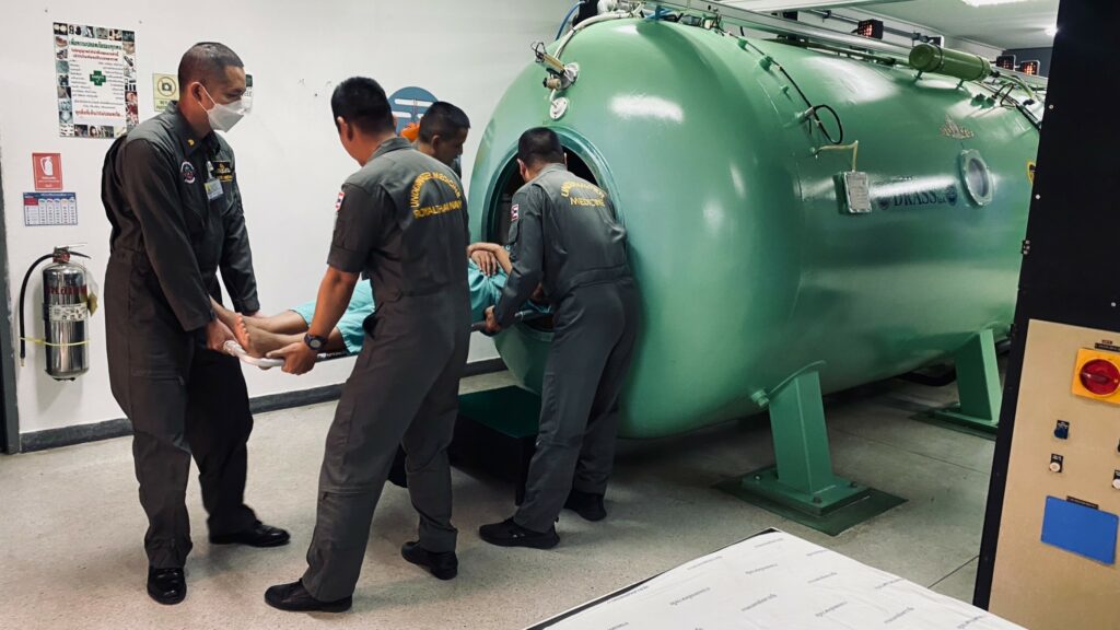เมื่อ ๒๖ ธ.ค.๖๖ ร.อ.หญิง กานต์พิชชา ปุจฉาการ รอง หน.กองเวชศาสตร์ใต้น้ำและการบิน รพ.อาภากรเกียรติวงศ์ ฐท.สส. เป็นผู้ควบคุมในการฝึกซ้อมแผนฉุกเฉิน ช่วยเหลือผู้ป่วย ในกรณีเกิดการชักขณะรักษาด้วย Hyperbaric Chamber และ ผู้ป่วยเกิดภาวะ Pneumothorax เพื่อให้ผู้ป่วยเกิดความปลอดภัยและได้รับการดูแลรักษาอย่างทันท่วงทีเมื่อเกิดเหตุการณ์จริง ณ​ กองเวชศาสตร์ใต้น้ำและการบิน​ รพ.อาภากรเกียรติวงศ์ ฐท.สส.