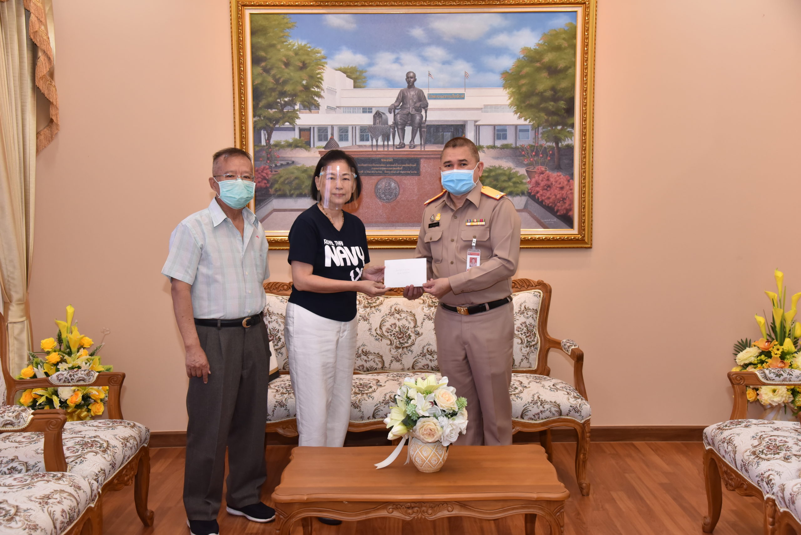 พล.ร.ต.ชลธร สุวรรณกิตติ ผอ.รพ.อาภากรเกียรติวงศ์ ฐท.สส. รับมอบเงินบริจาค จำนวน ๕๑,๐๐๐ บาท เพื่อจัดซื้ออุปกรณ์ทางการแพทย์ ให้กับ รพ.ฯ จาก คุณ จินดาพร วิรุฬห์ประภา และคณะ ณ ห้องรับรองอาภากรเกียรติวงศ์ เมื่อวันที่ ๒๕ สิงหาคม ๒๕๖๓
