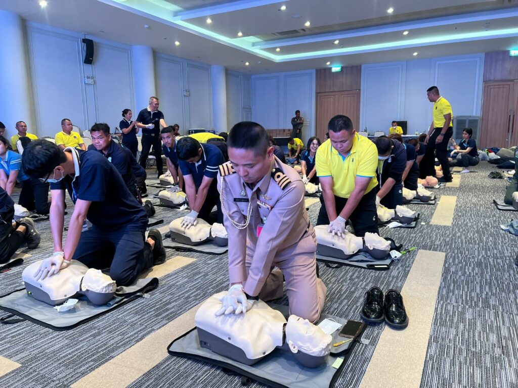 ระหว่าง ๑๐ – ๑๒ ม.ค.๖๗ กองนาวิกเวชกิจ รพ.อาภากรเกียรติวงศ์ ฐท.สส. สนับสนุนวิทยากรบรรยายให้ความรู้และฝึกอบรมการช่วยฟื้นคืนชีพขั้นพื้นฐาน(CPR) และการใช้เครื่องฟื้นคืนคลื่นหัวใจด้วยไฟฟ้าแบบอัตโนมัติ(AED) ให้แก่ กำลังพล การท่าอากาศยานอู่ตะเภา ณ อาคารสำนักงานการท่าอากาศยานอู่ตะเภา อ.บ้านฉาง จว.ระยอง
