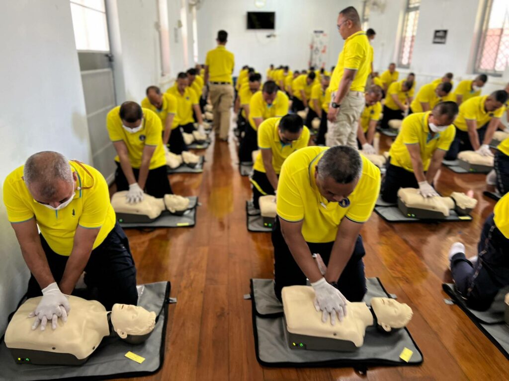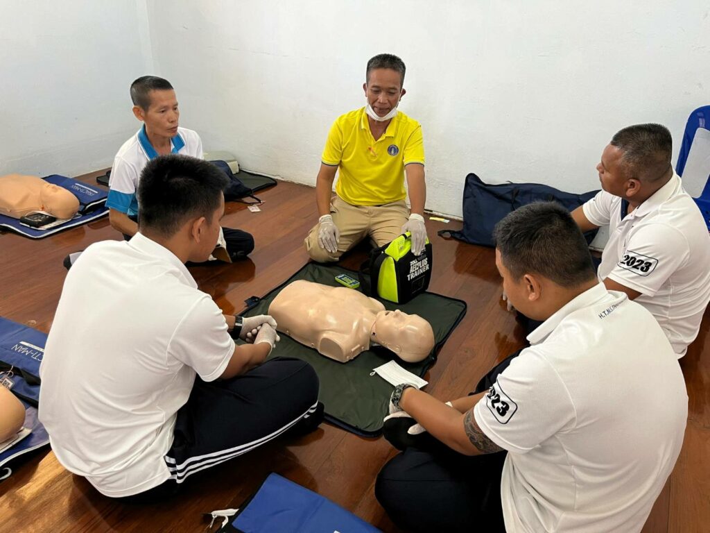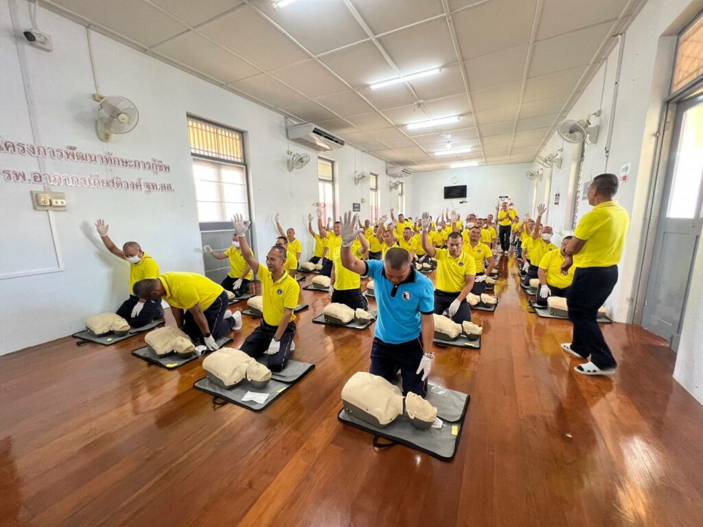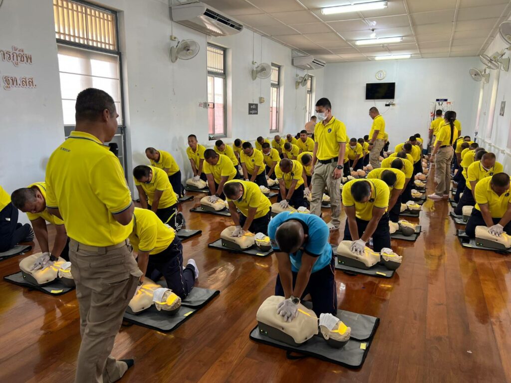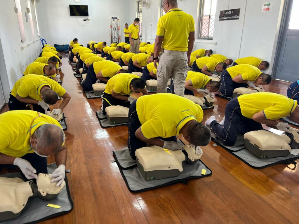 เมื่อ ๑๙ ม.ค.๖๗ กองนาวิกเวชกิจ รพ.อาภากรเกียรติวงศ์ ฐท.สส. สนับสนุนวิทยากรบรรยายให้ความรู้การช่วยฟื้นคืนชีพขั้นพื้นฐาน(CPR) และการใช้เครื่องฟื้นคืนคลื่นหัวใจด้วยไฟฟ้าแบบอัตโนมัติ(AED) ให้แก่ กำลังพล กฟก.๑ กร. กฟก.๒ กร.  ศพด.อร. กยฝ.กร. กบฮ.กร. กชธ.ฐท.สส. อศ.ทร. นย. อรม.อร. อล.ทร. กบร.กร. สพ.ทร. กยฝ.กร. กชธ.ฐท.สส.  กฟก.๒ กร. สอ.รฝ.กลน.กร. อร. ทรภ.๒ บก.กร. กขส.ฐท.สส. กสพ.ฐท.สส. กตอ.กร. กอง รปภ.ฐท.กท. และ กบฮ.กร. ณ ห้องอบรมโครงการพัฒนาทักษะการกู้ชีพ รพ.อาภากรเกียรติวงศ์ ฐท.สส.