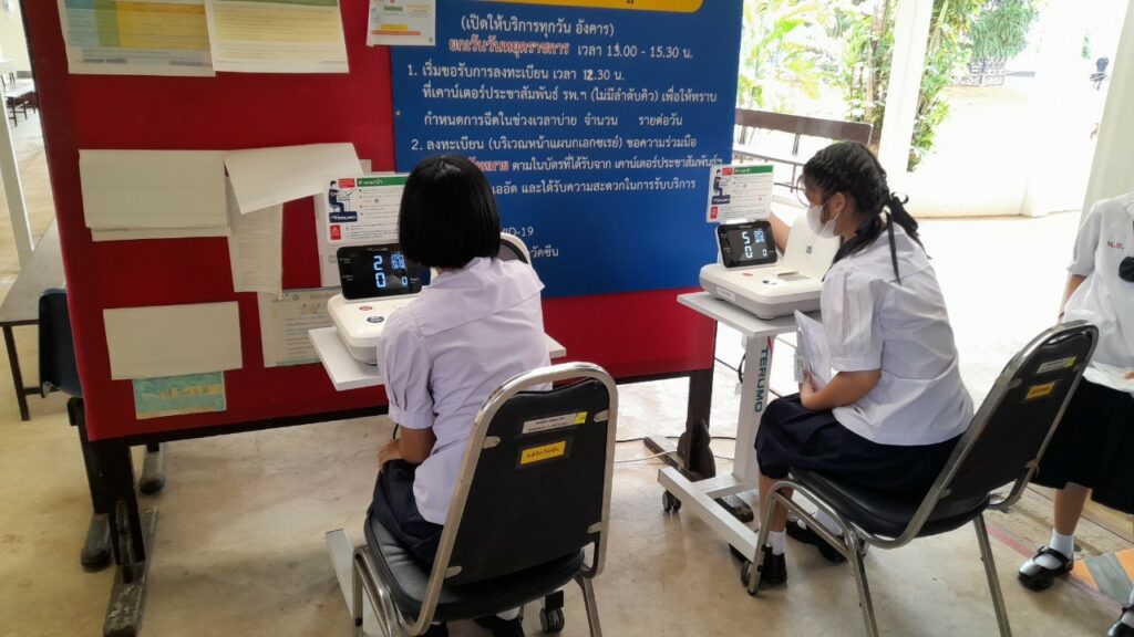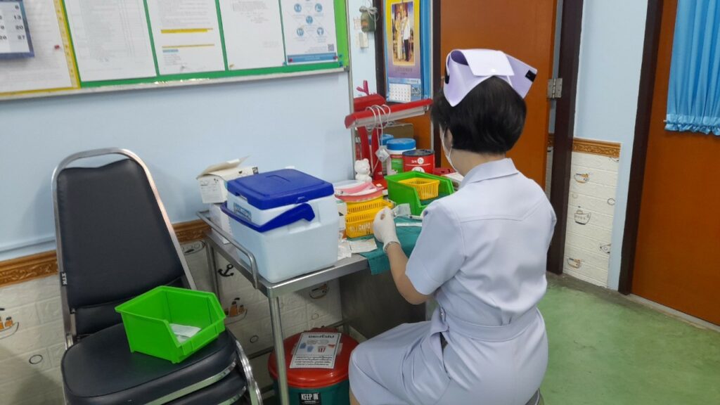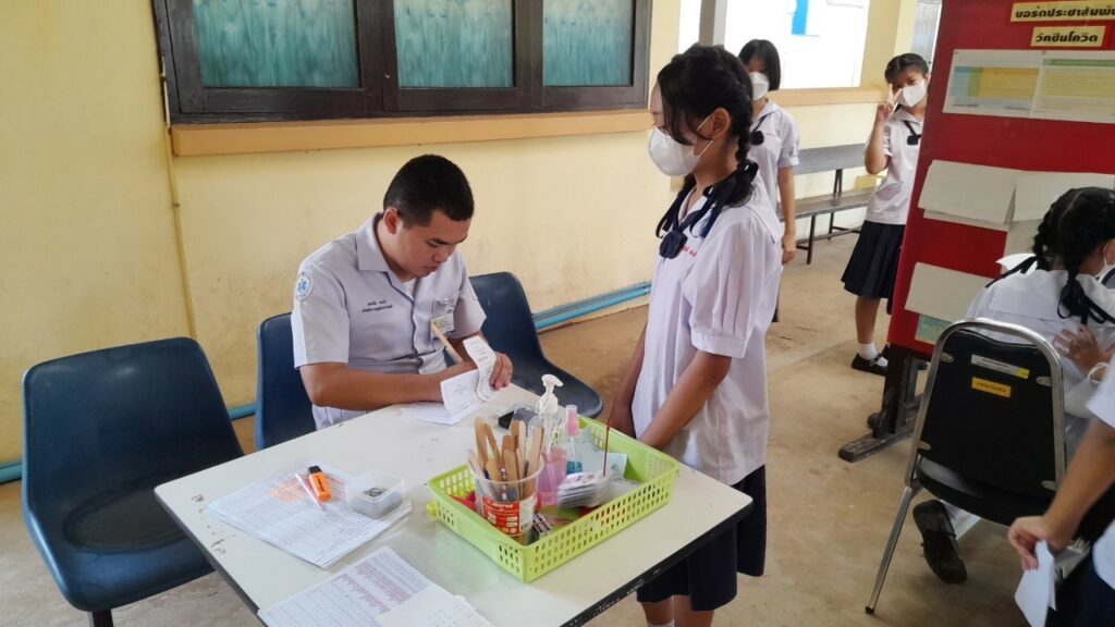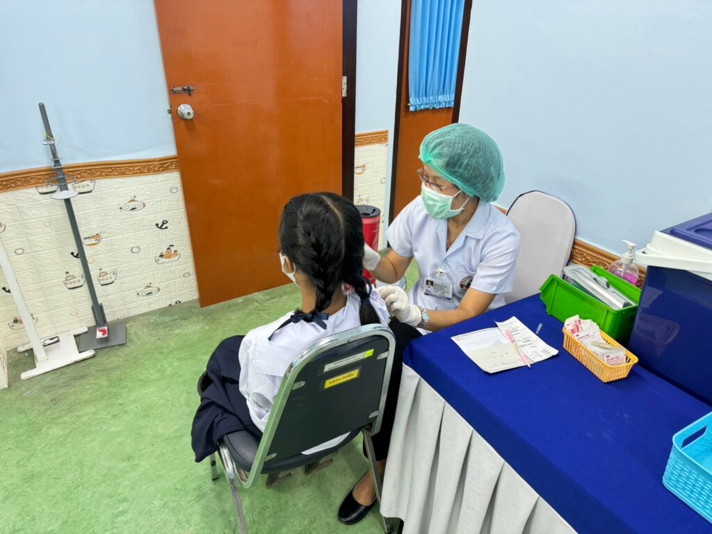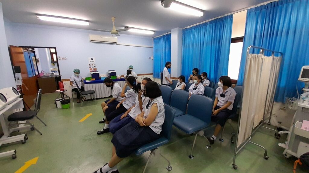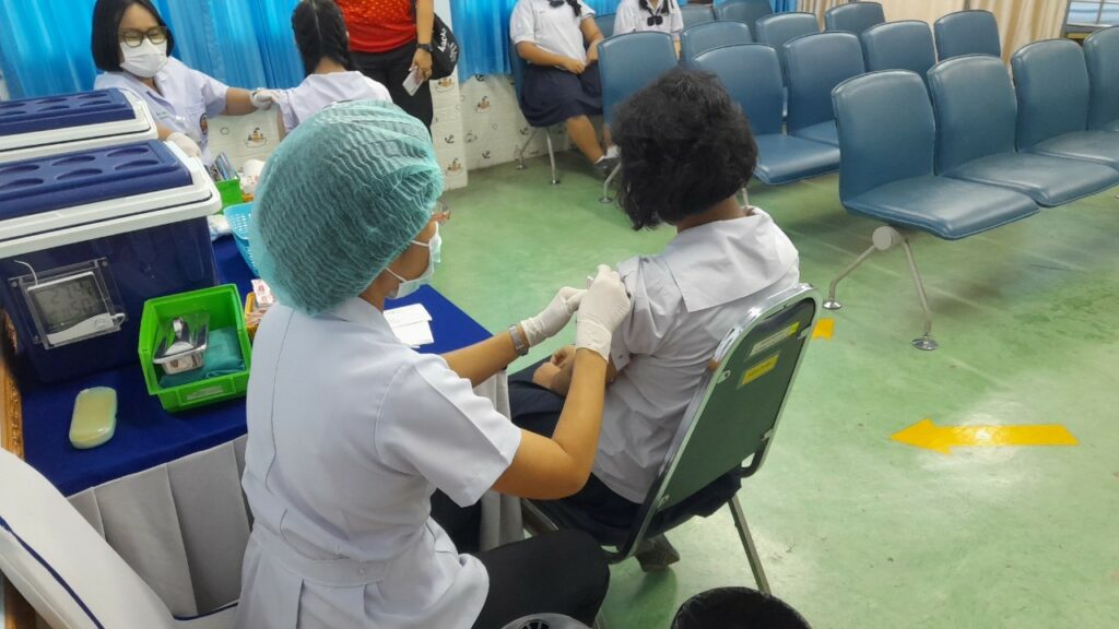 เมื่อ ๕ ก.พ.๖๗ กองเวชกรรมป้องกัน รพ.อาภากรเกียรติวงศ์ ฐท.สส.ได้ดำเนินการฉีดวัคซีนป้องกันโรคคอตีบ-บาดทะยัก เพื่อลดและป้องกัน ความเสี่ยงการเกิดโรคให้แก่ นักเรียน รร.นาวิกโยธินบูรณะ ชั้น ป.๖ ณ ห้องวัคซีน กองเวชกรรมป้องกัน รพ.อาภากรเกียรติวงศ์ ฐท.สส. / รพ.อาภากรเกียรติวงศ์ ฐท.สส. / By ข่าวผู้บังคับบัญชา จำนวนคนดู : 4