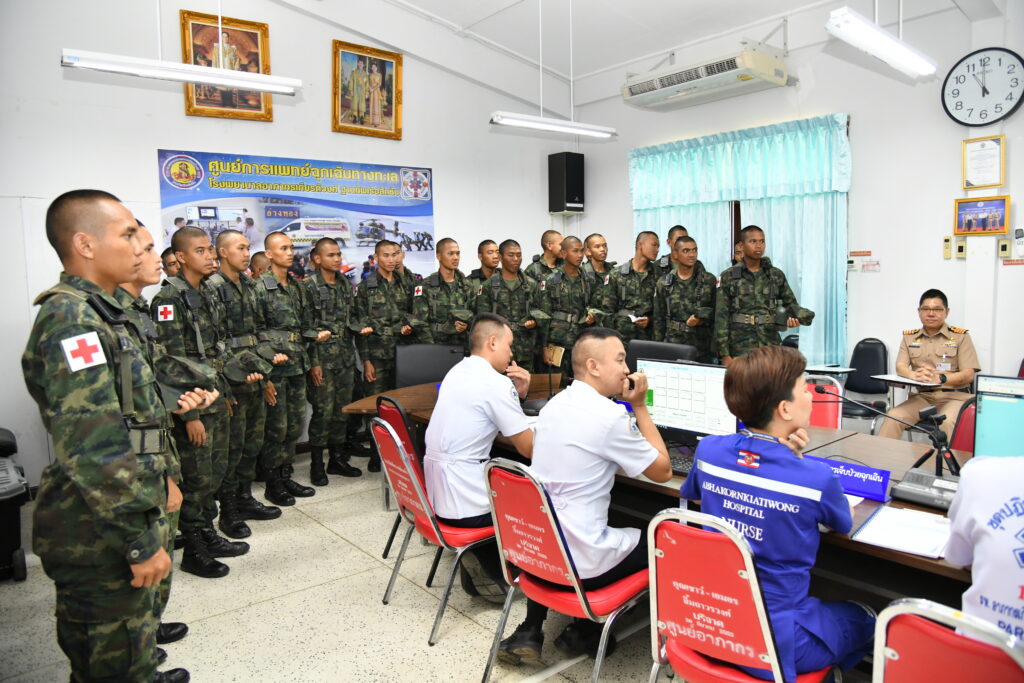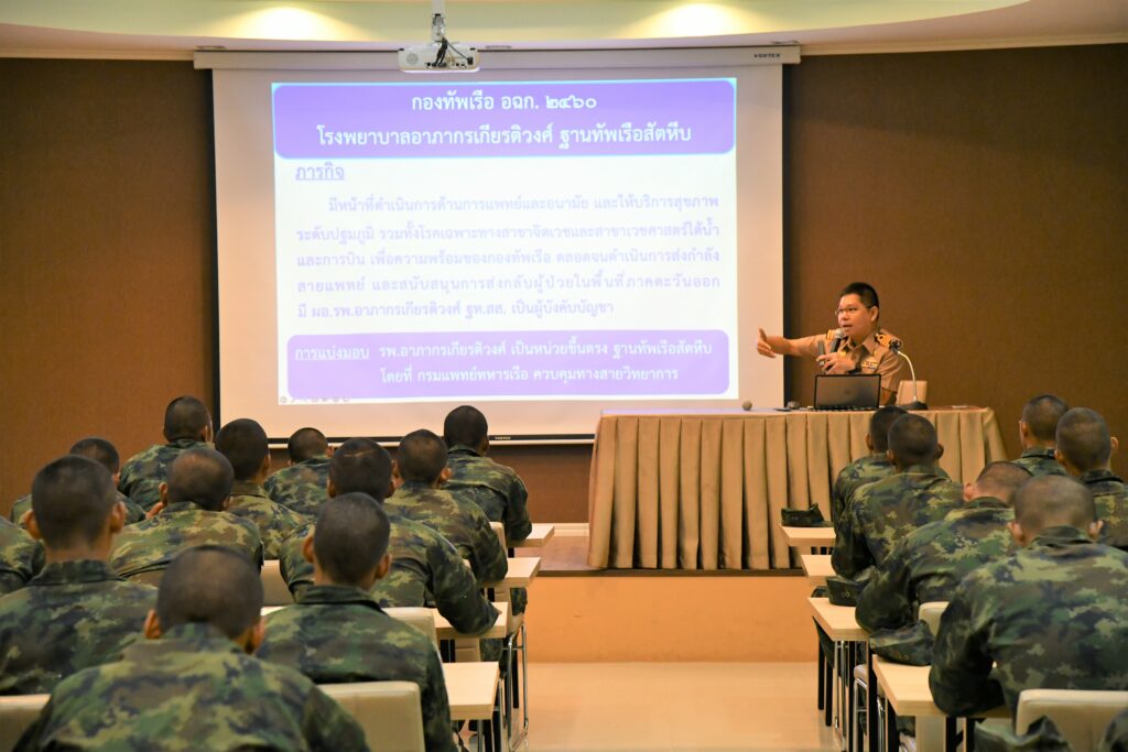 เมื่อ ๑๓ ก.พ.๖๗ พล.ร.ต.สรรชัย เลิศวีระศิริกุล ผอ.รพ.อาภากรเกียรติวงศ์ ฐท.สส. ให้โอวาทแก่นักเรียนนาวิกเวชกิจ ชั้นปีที่ ๒ รร.นวก.ศวก.พร. เข้าศึกษาดูงาน ศูนย์การแพทย์ฉุกเฉินทางทะเล รพ.อาภากรเกียรติวงศ์ ฐท.สส. โดยมี น.อ.ณัฐศักดิ์ วรเจริญศรี หน.กองปฏิบัติการ ศูนย์การแพทย์ฉุกเฉินทางทะเล เป็นวิทยากรผู้บรรยาย ณ ห้องประชุมลุมพิกานนท์ รพ.อาภากรเกียรติวงศ์ ฐท.สส.