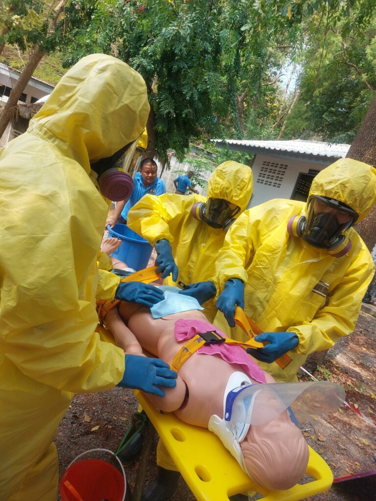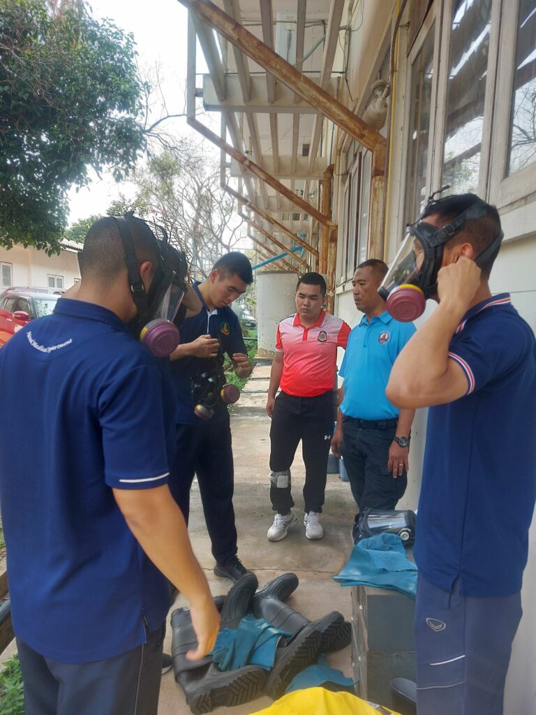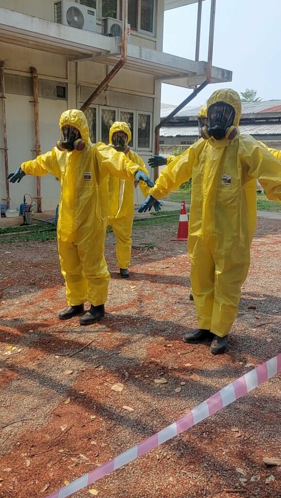 เมื่อ ๑๖ ก.พ.๖๗ น.ท.ณรงค์ พึ่งลอย หน.อนามัยสิ่งแวดล้อม กองเวชกรรมป้องกัน รพ.อาภากรเกียรติวงศ์ ฐท.สส. ดำเนินการจัดอบรมให้ความรู้ตามหลักการป้องกันเคมี ชีวะ รังสี และนิวเคลียร์ (Chemical, biological, radiological and nuclear defense : CBRN) ณ พื้นที่ด้านหลังกองเวชกรรมป้องกัน รพ.อาภากรเกียรติวงศ์ ฐท.สส. / รพ.อาภากรเกียรติวงศ์ ฐท.สส. / By ข่าวผู้บังคับบัญชา จำนวนคนดู : 6
