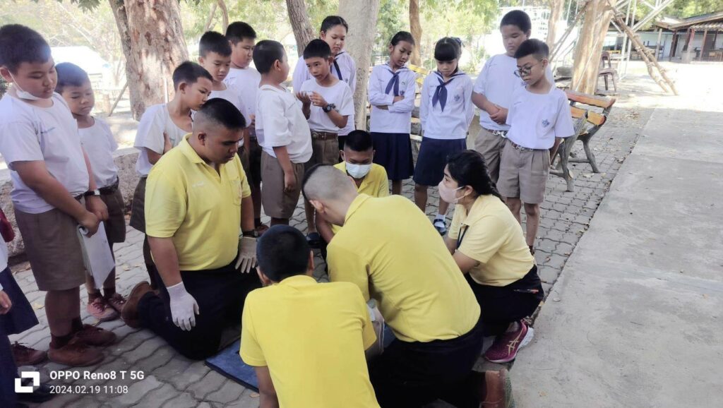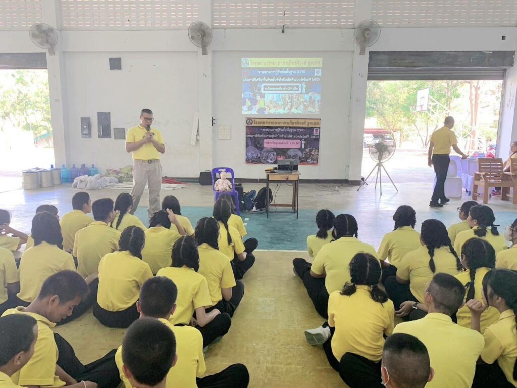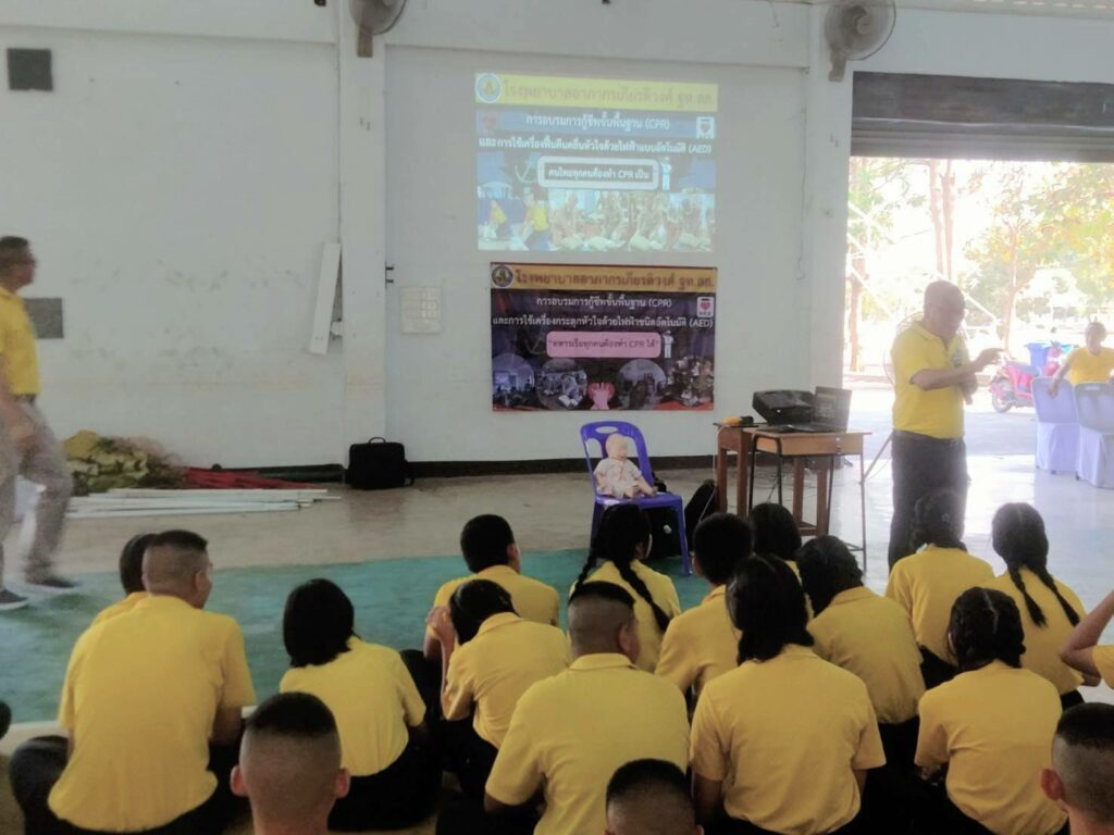 เมื่อ ๑๙ ก.พ.๖๗ กองนาวิกเวชกิจ รพ.อาภากรเกียรติวงศ์ ฐท.สส. สนับสนุบวิทยากรบรรยายให้ความรู้การช่วยฟื้นคืนชีพขั้นพื้นฐาน (CPR) และการใช้เครื่องฟื้นคืนคลื่นหัวใจด้วยไฟฟ้าแบบอัตโนมัติ (AED) ให้แก่กำลังพล รร.สัตหีบ เขต ฐท.สส. ณ รร.สัตหีบ เขต ฐท.สส.