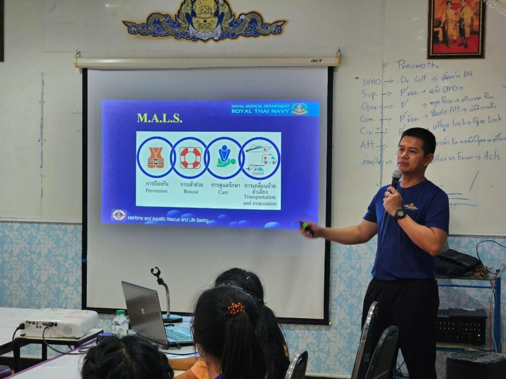 เมื่อ ๒๗ ก.พ.๖๗ กองเวชศาสตร์ใต้น้ำและการบิน รพ.อาภากรเกียรติวงศ์ ฐท.สส. สนับสนุนทีมวิทยากรให้ความรู้ทฤษฎี และฝึกปฏิบัติด้านการช่วยเหลือผู้ประสบภัยทางน้ำเบื้องต้น ให้แก่เจ้าหน้าที่แผนกแพทย์ทางเลือก กองการแพทย์ทางเลือก,แผนกทดสอบและส่งเสริมสมรรถภาพ กองเวชกรรมป้องกัน รพ.อาภากรเกียรติวงศ์ ฐท.สส.ในการดูแลผู้ป่วยกายภาพที่ทำการรักษาด้วยธาราบำบัด เพื่อเป็นการป้องกันเหตุฉุกเฉินที่อาจเกิดขึ้นได้ ณ สระว่ายน้ำ รพ.อาภากรเกียรติวงศ์ ฐท.สส. / รพ.อาภากรเกียรติวงศ์ ฐท.สส. / By ข่าวผู้บังคับบัญชา จำนวนคนดู : 4