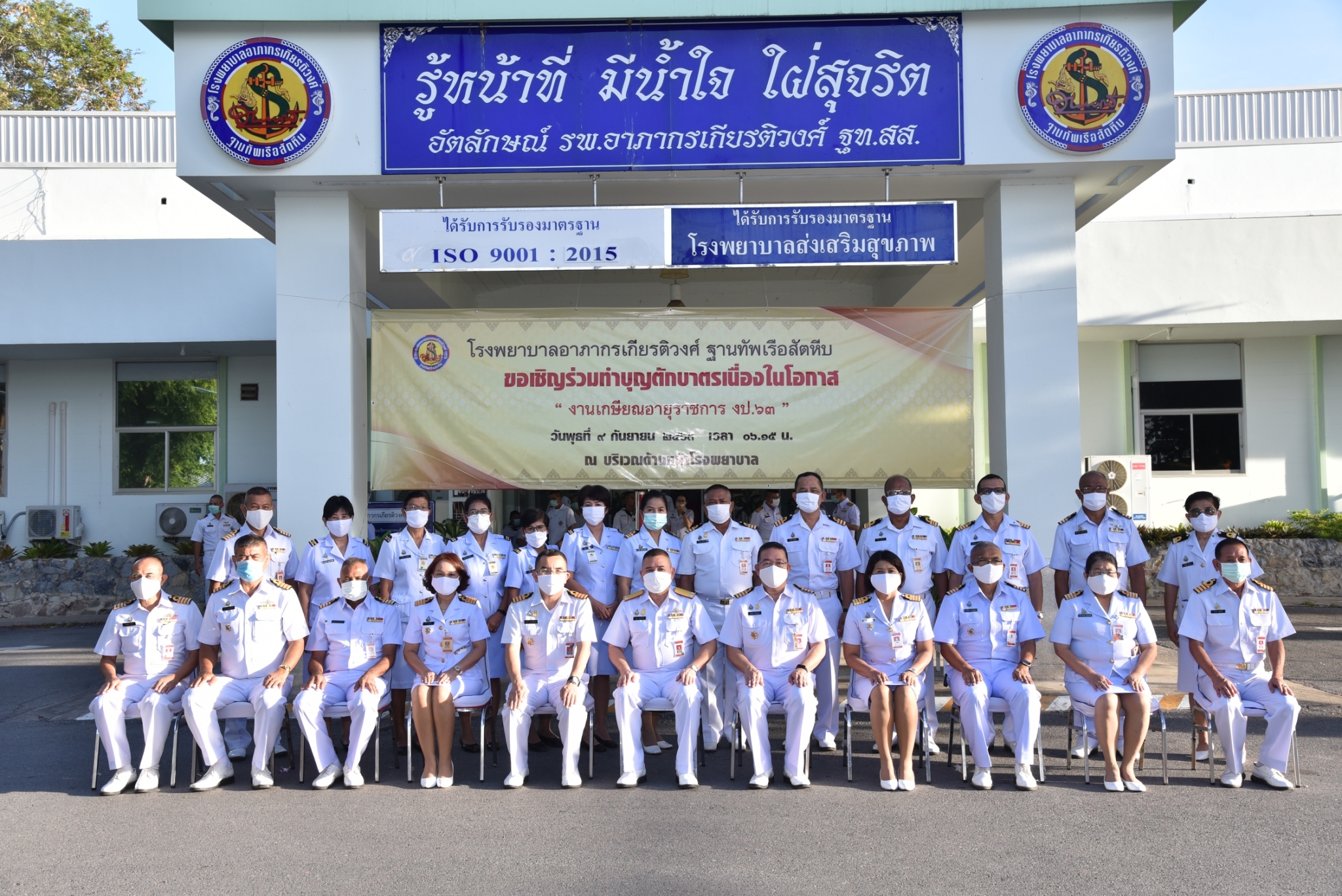 ๙ ก.ย. ๖๓ โรงพยาบาลอาภากรเกียรติวงศ์ ฐานทัพเรือสัตหีบ โดยมี​ พล.ร.ต.ชลธร​ สุวรรณกิตติ ผู้อำนวยการโรงพยาบาล เป็นประธานการจัดกิจกรรมร่วมทำบุญตักบาตรเนื่องในโอกาส “งานเกษียณอายุราชการ​ งป.๖๓” เพื่อความเป็นศิริมงคล​