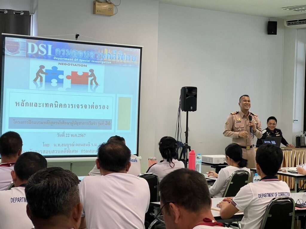 เมื่อ ๒๒ พ.ค.๖๗ น.ท.สมบูรณ์ ดอนสนธิ์ หน.แผนกจิตวิทยาทางการแพทย์ กองสุขภาพจิต รพ.อาภากรเกียรติวงศ์ ฐท.สส. สนับสนุนวิทยากร กรมสอบสวนคดีพิเศษ (DSI) บรรยายและฝึกปฏิบัติ หัวข้อ”การเจรจาต่อรองในภาวะวิกฤติ) ณ สถาบันการสอบสวนคดีพิเศษ (DSI Academy) แขวงลำผักชี หนองจอก กทม. / รพ.อาภากรเกียรติวงศ์ ฐท.สส. / By ข่าวผู้บังคับบัญชา จำนวนคนดู : 8