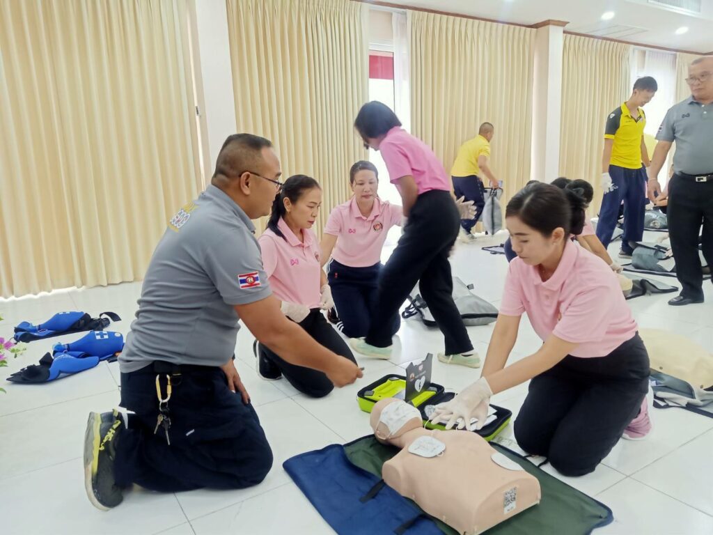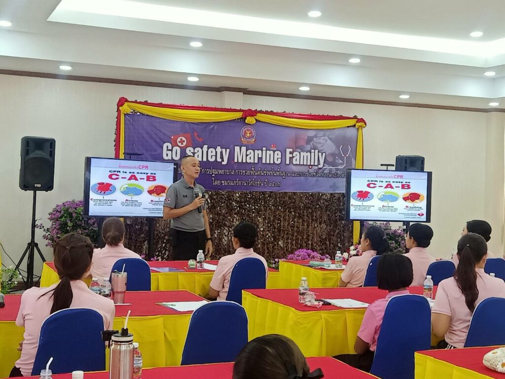เมื่อ ๒๕ พ.ค.๖๗ กองนาวิกเวชกิจ รพ.อาภากรเกียรติวงศ์ ฐท.สส. สนับสนุนวิทยากรบรรยายให้ความรู้และฝึกอบรมการช่วยฟื้นคืนชีพขั้นพื้นฐาน (CPR) และการใช้เครื่องฟื้นคืนคลื่นหัวใจด้วยไฟฟ้าแบบอัตโนมัติ (AED) ให้แก่ ชมรมภริยานาวิกโยธิน โดยมี ผบ.นย.และ รอง ผบ.นย. เข้ารับการฝึกฯ ณ อาคารอเนกประสงค์ นย.