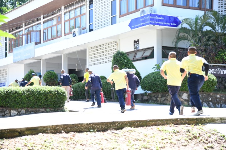 เมื่อ ๒๗ พ.ค.๖๗ นาวาเอก ชาตรี เปี่ยมศิริ รอง ผอ.รพ.อาภากรเกียรติวงศ์ ฐท.สส. เป็นประธานและร่วมสังเกตการฝึกซ้อมดับเพลิงระดับโรงพยาบาลในเวลาราชการ ประจำปีงบประมาณ ๒๕๖๗ เพื่อเป็นการเตรียมความพร้อมให้แก่บุคลากรของโรงพยาบาล ให้เกิดความรู้ ความชำนาญเกี่ยวกับการจัดสถานีดับเพลิง โดยการฝึกซ้อมในครั้งนี้ได้รับการสนับสนุนรถดับเพลิงพร้อมเจ้าหน้าที่ดับเพลิง จากหมวดดับเพลิง แผนกรถยนต์ ขส.ฐท.สส. ร่วมทำการฝึกซ้อม ณ กองนาวิกเวชกิจ รพ.อาภากรเกียรติวงศ์ พร. / รพ.อาภากรเกียรติวงศ์ ฐท.สส. / By ข่าวผู้บังคับบัญชา จำนวนคนดู : 6