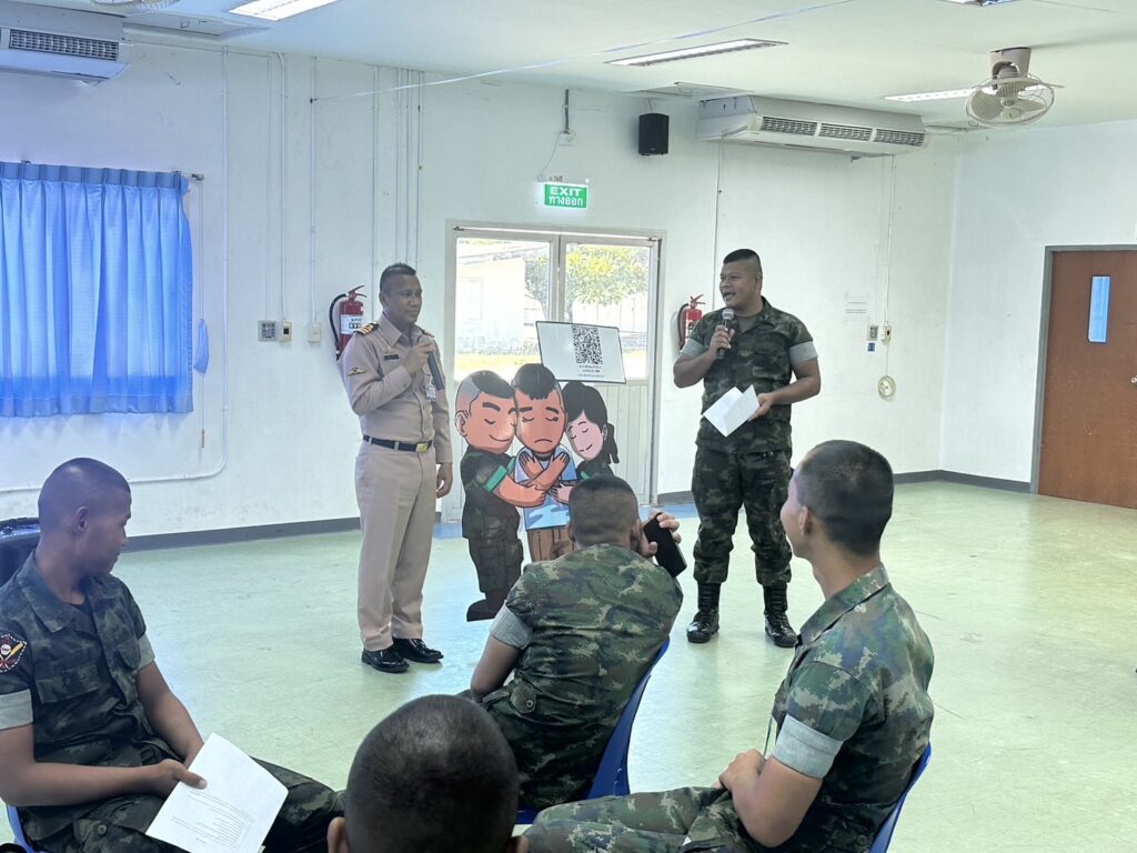 ระหว่าง ๑๓ – ๑๔ ส.ค.๖๗ กองสุขภาพจิต รพ.อาภากรเกียรติวงศ์ ฐท.สส. ให้การสนับสนุน พัน.พ.กรม สน.พล.นย. เป็นวิทยากรอบรมบรรยายให้ความรู้และฝึกทักษะการสังเกตการเฝ้าระวัง ป้องกันปัญหาสุขภาพจิต ให้แก่ กลุ่มทหาร ข้าราชการ ครูและผู้นำชุมชนพื้นที่ค่ายกรมหลวงชุมพร ณ อาคาร A – B กอง สน.ศฝ.นย. / รพ.อาภากรเกียรติวงศ์ ฐท.สส. / By ข่าวผู้บังคับบัญชา จำนวนคนดู : 9