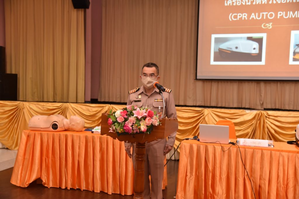น.อ.ชาญชาย สมบูรณ์ศักดิกุล รอง ผอ.รพ.อาภากรเกียรติวงศ์ ฐท.สส. เป็นประธานกล่าวเปิดการการประชุมวิชาการ เรื่อง การใช้เครื่อง AED และเครื่อง Auto CPR เพื่อเป็นการเพิ่มพูนทักษะ ความรู้ ความชำนาญ ให้แก่ พยาบาลผู้ปฏิบัติงานของ รพ.ฯ ณ ห้องประชุมกฤษณจันทร์